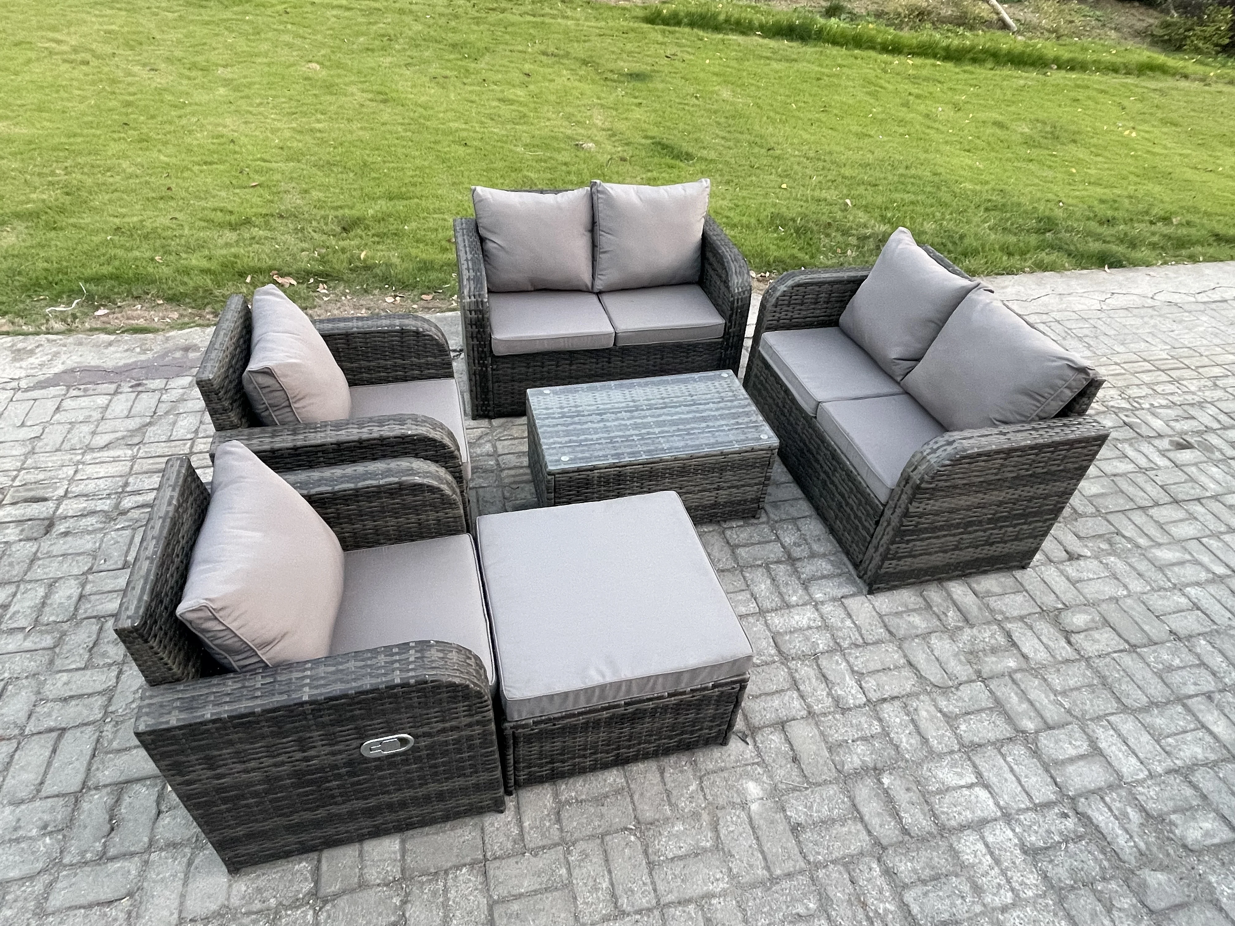 7-Sitzer Rattan Gartenmöbel Set mit Tish Sofa Dunkelgrau