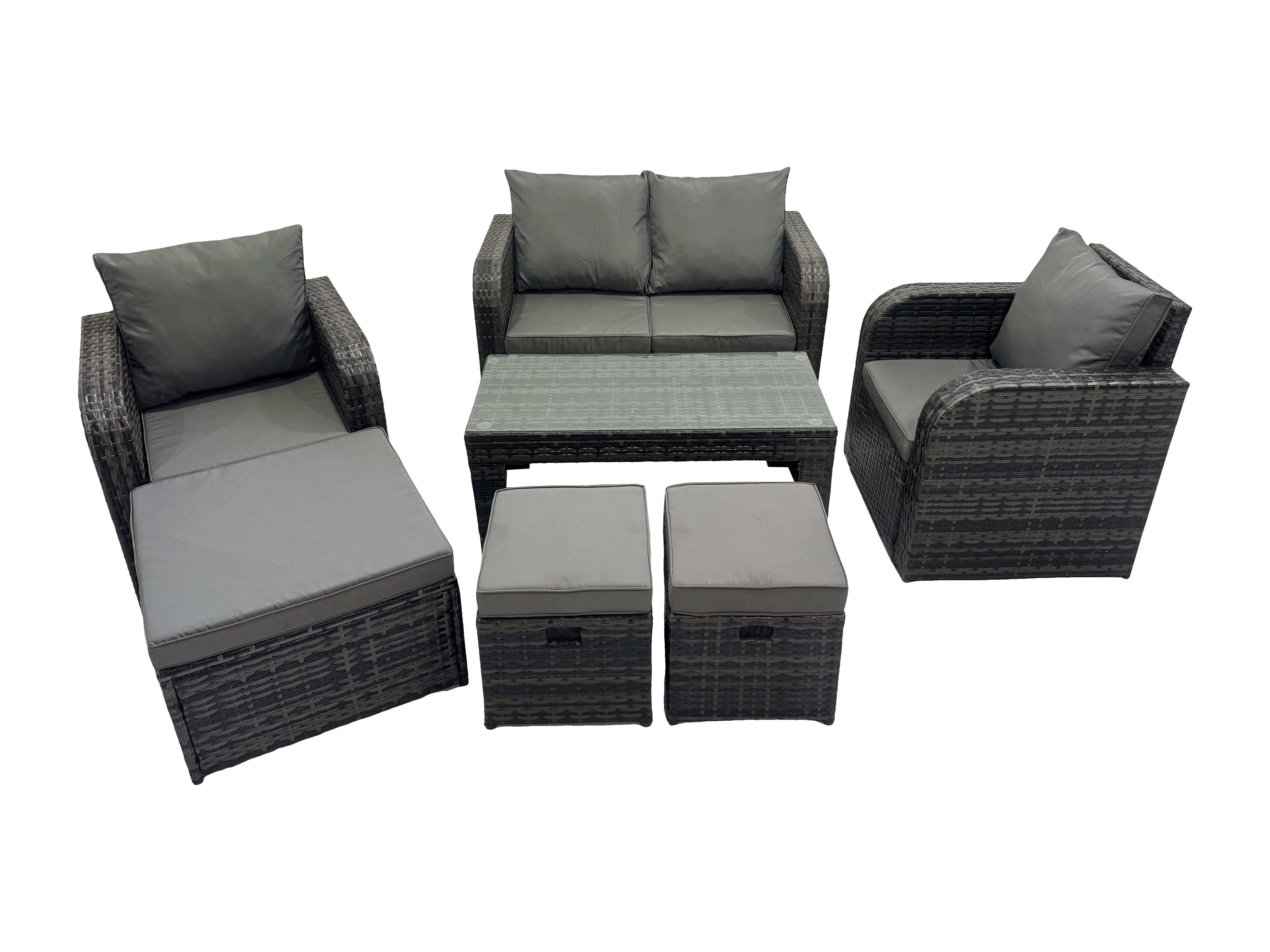7-Sitzer Rattan Lounge Sofa Set Gartenmöbel-Set mit Rechteckiger Couchtisch Love Sofa 3 Hockern Dunkelgrau Gemischt