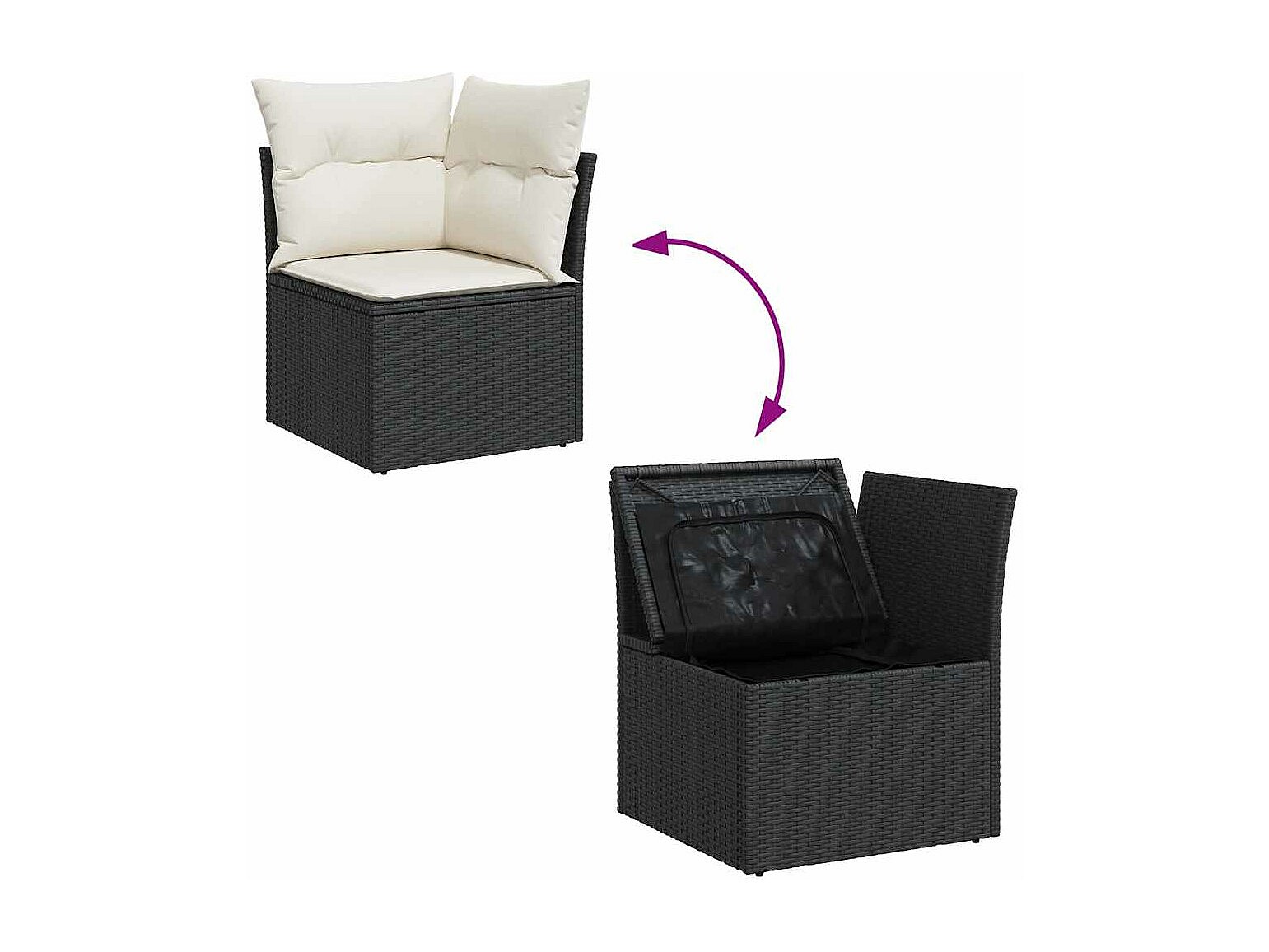 7-teiliges Gartenmöbelset mit schwarzen Kissen aus gewebtem Harz