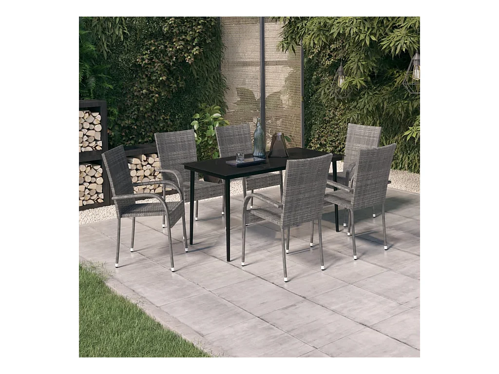 7-tlg. Garten-Essgruppe,Gartensitzgruppe Grau und Schwarz -gkd24659