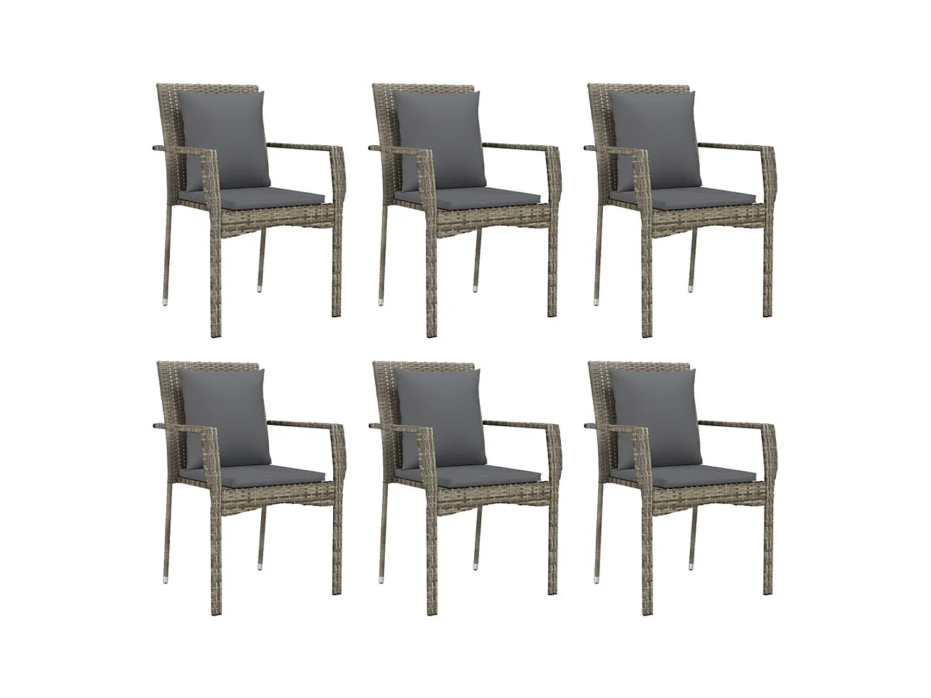 7-tlg. Garten-Essgruppe mit Kissen Grau Poly Rattan