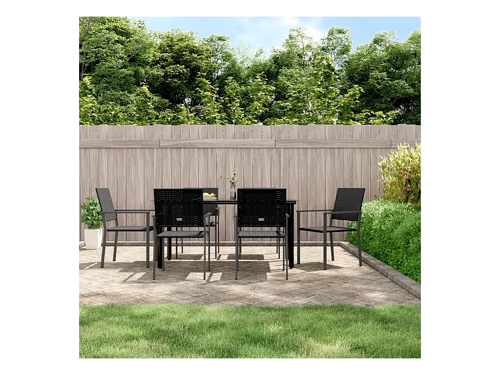 7-tlg. Garten-Essgruppe Poly Rattan und Stahl