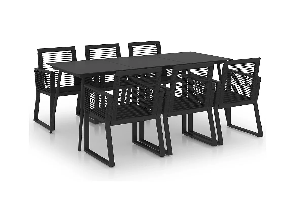 7-tlg. Garten-Essgruppe PVC Rattan Schwarz