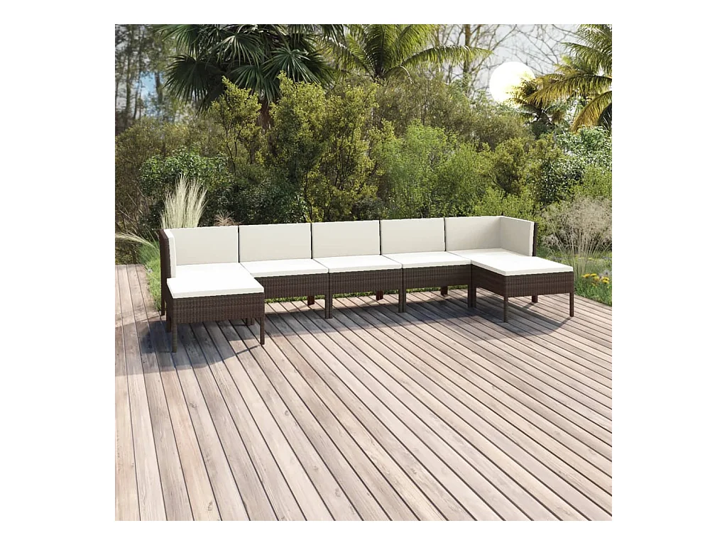 7-tlg. Garten-Lounge-Set mit Auflagen Poly Rattan Braun