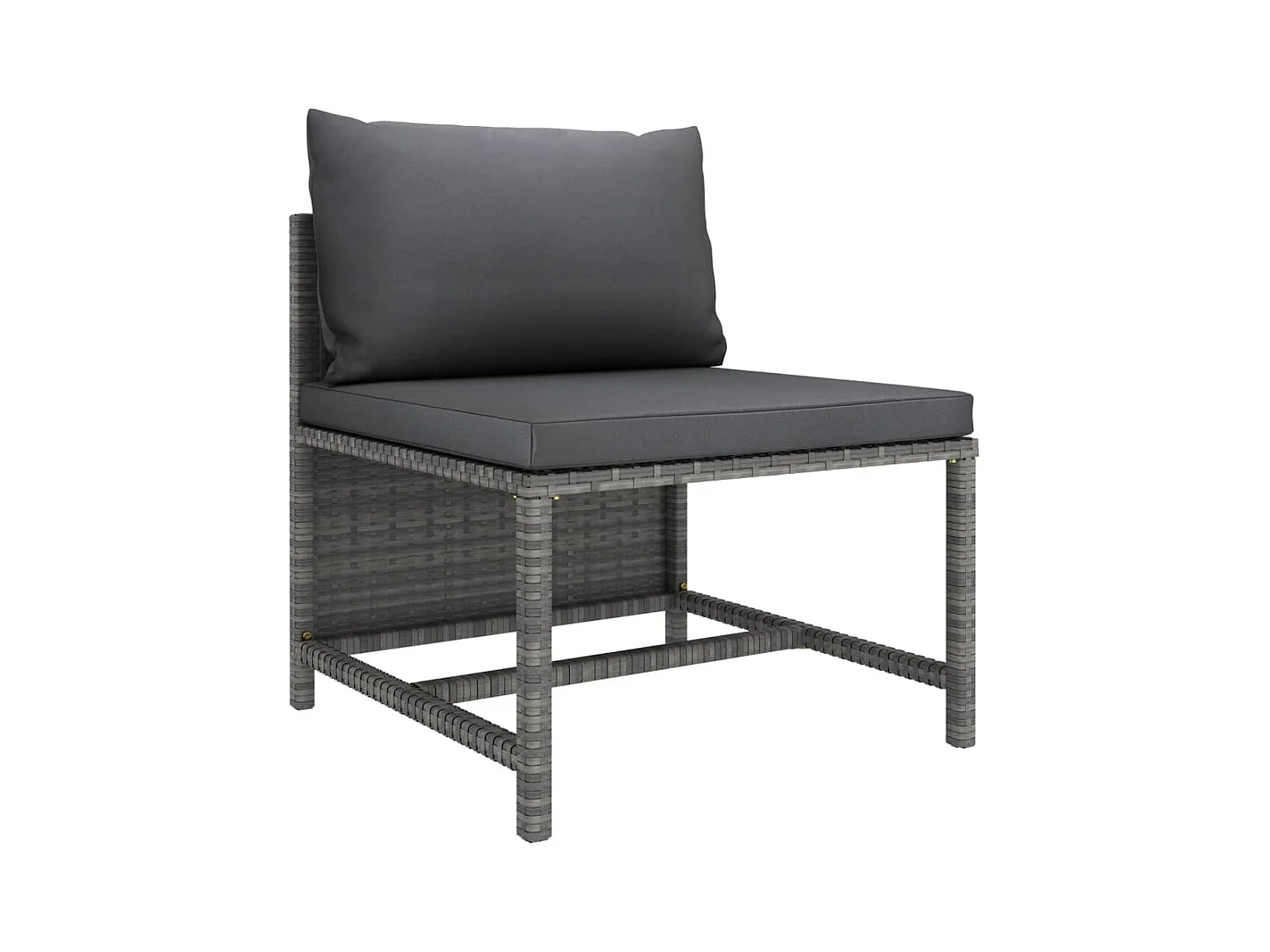 7-tlg. Garten-Lounge-Set mit Kissen Poly Rattan Grau