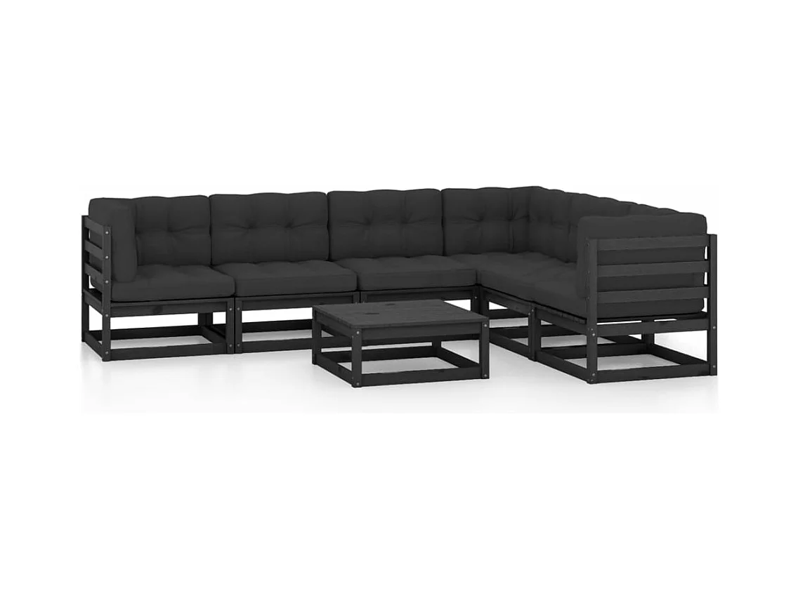 7-tlg. Garten-Lounge-Set mit Kissen Schwarz Massivholz Kiefer