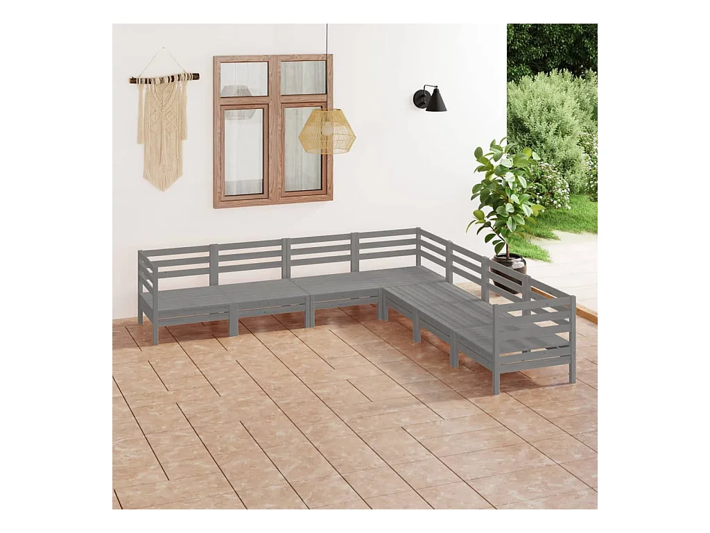 7-tlg. Garten-Sitzgruppe | Garten-Lounge-Set Massivholz Kiefer Grau -GKD938141