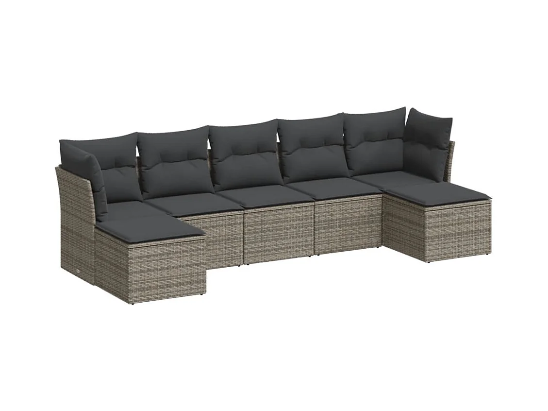 7-tlg. Garten-Sofagarnitur,Gartenmöbel-Set mit Kissen Grau Poly Rattan -gkd835887