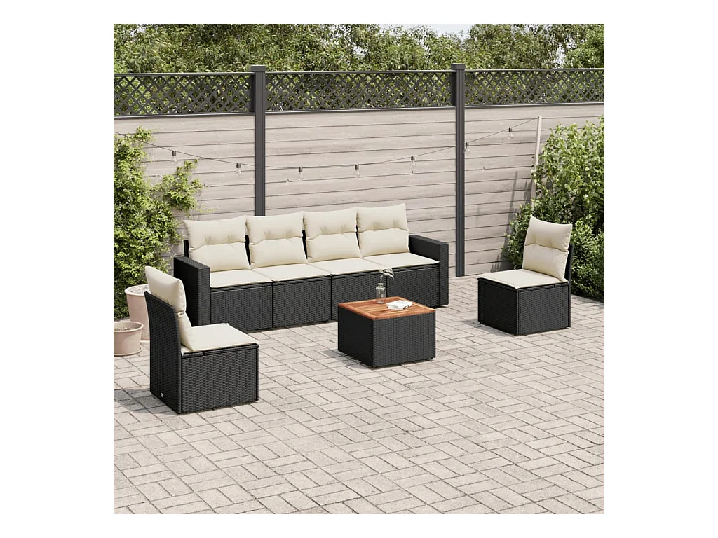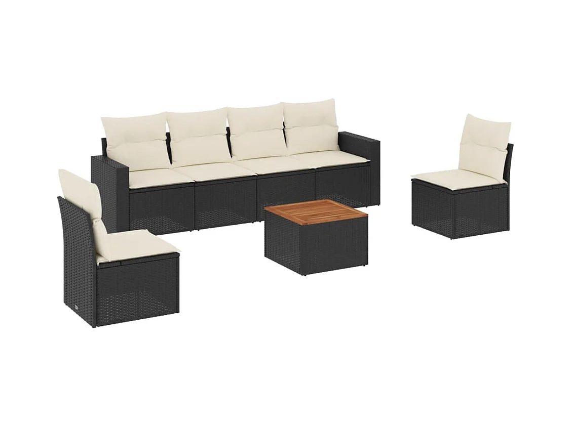 7-tlg. Garten-Sofagarnitur,Gartenmöbel-Set mit Kissen Schwarz Poly Rattan -gkd300366