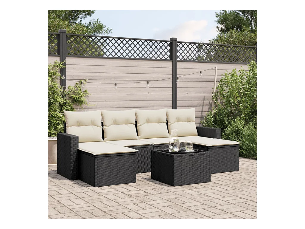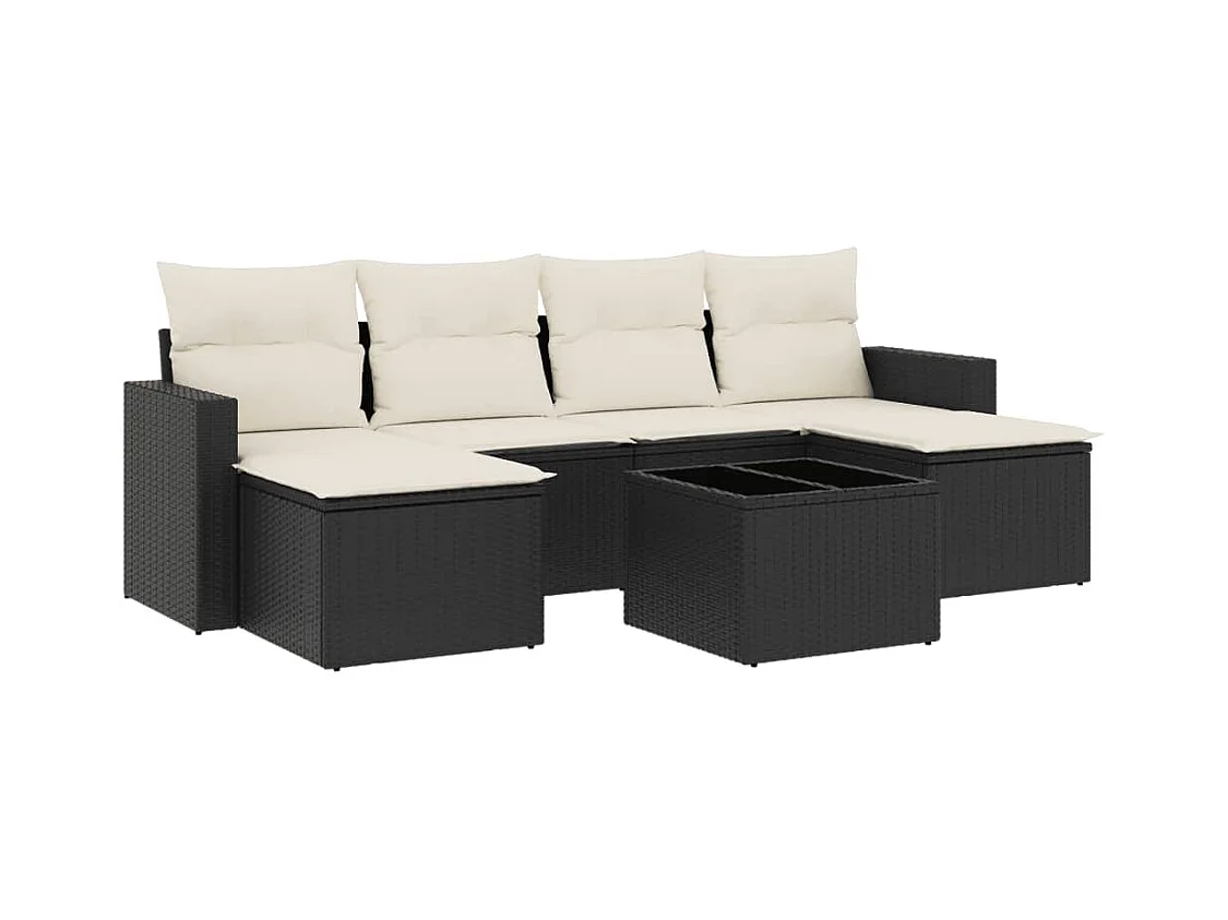7-tlg. Garten-Sofagarnitur,Gartenmöbel-Set mit Kissen Schwarz Poly Rattan -gkd990152