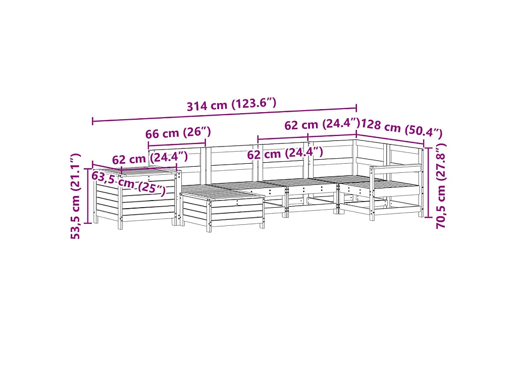 7-tlg. Garten-Sofagarnitur Kiefernholz Imprägniert