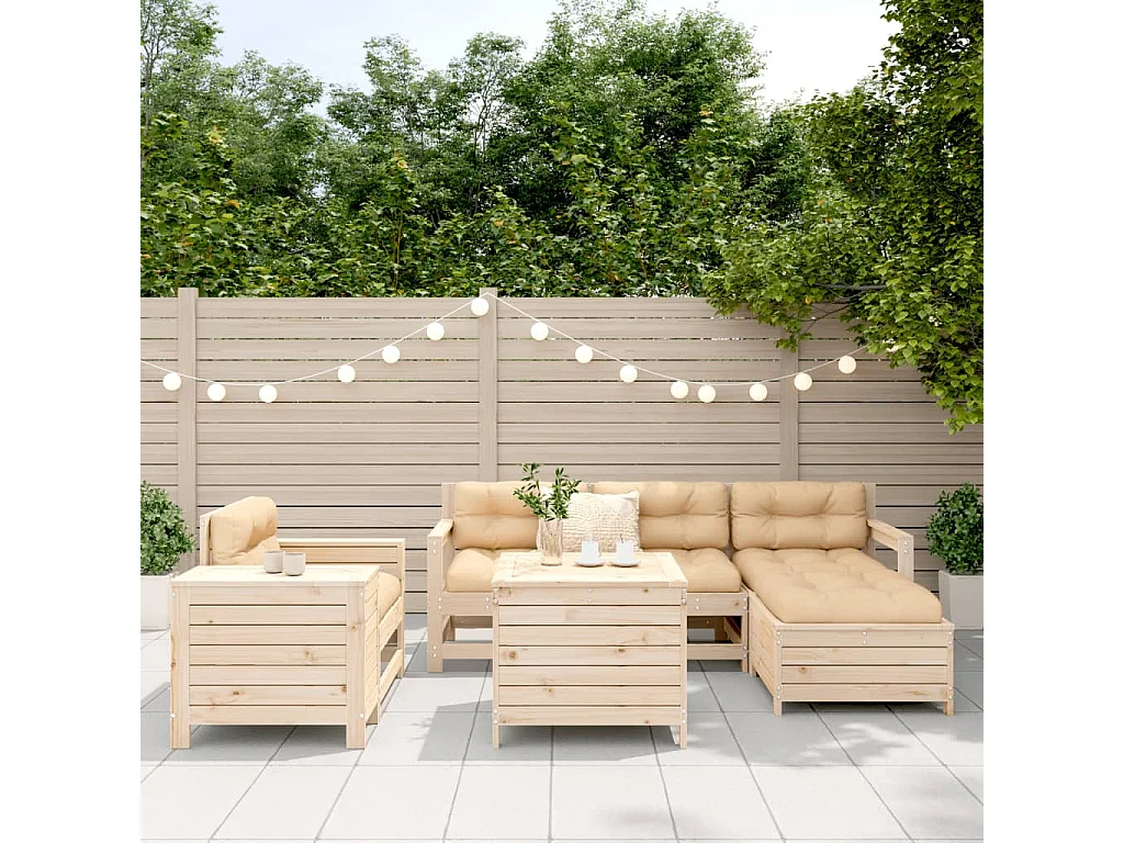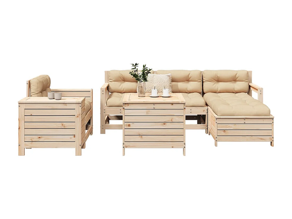 7-tlg. Garten-Sofagarnitur Massivholz Kiefer