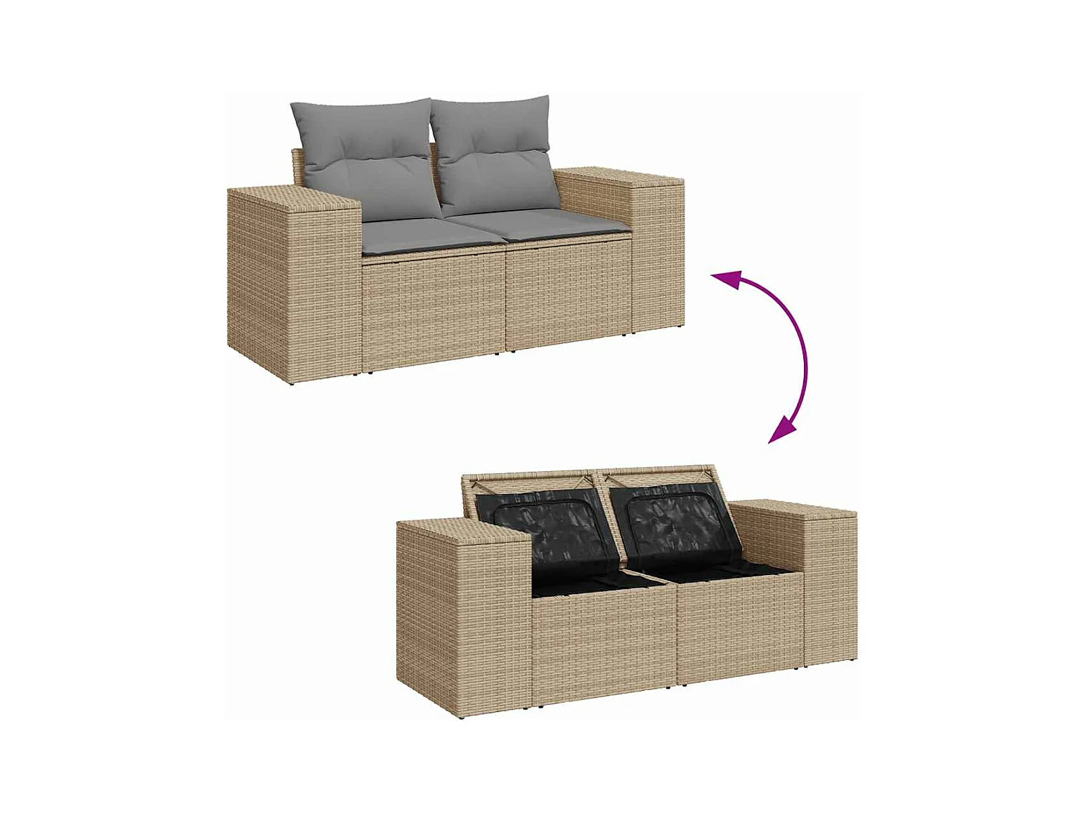7-tlg. Garten-Sofagarnitur mit Kissen Beige Poly Rattan