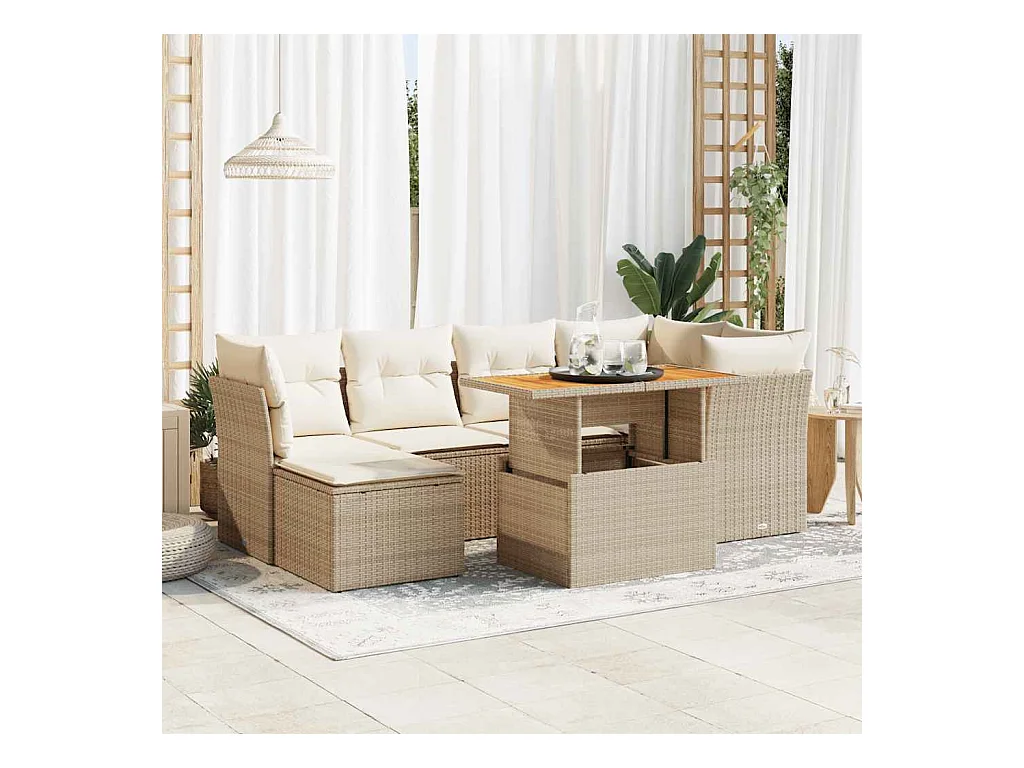 7-tlg. Garten-Sofagarnitur mit Kissen Beige Poly Rattan