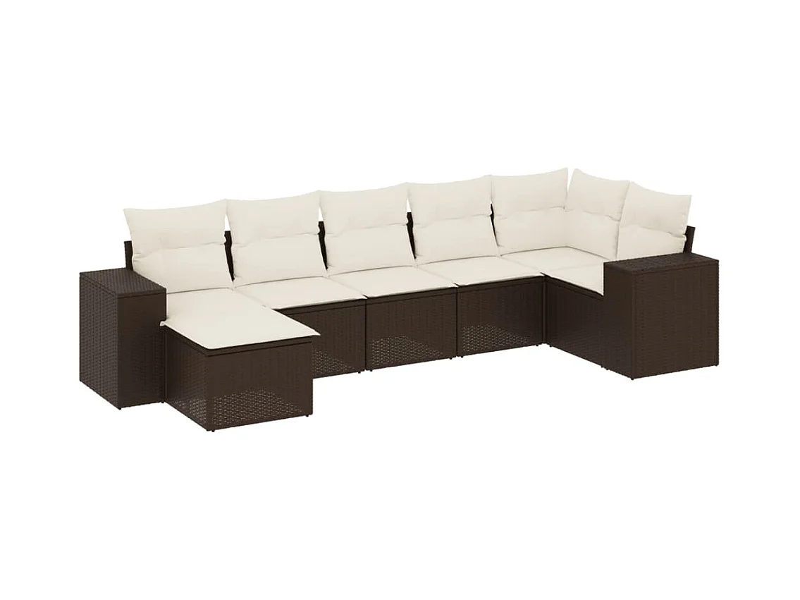 7-tlg. Garten-Sofagarnitur mit Kissen Braun Poly Rattan