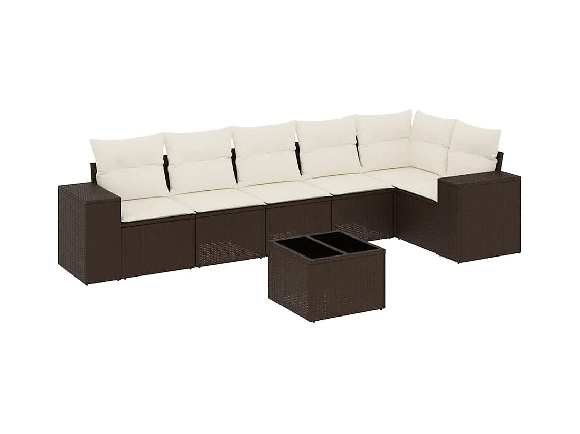 7-tlg. Garten-Sofagarnitur mit Kissen Braun Poly Rattan