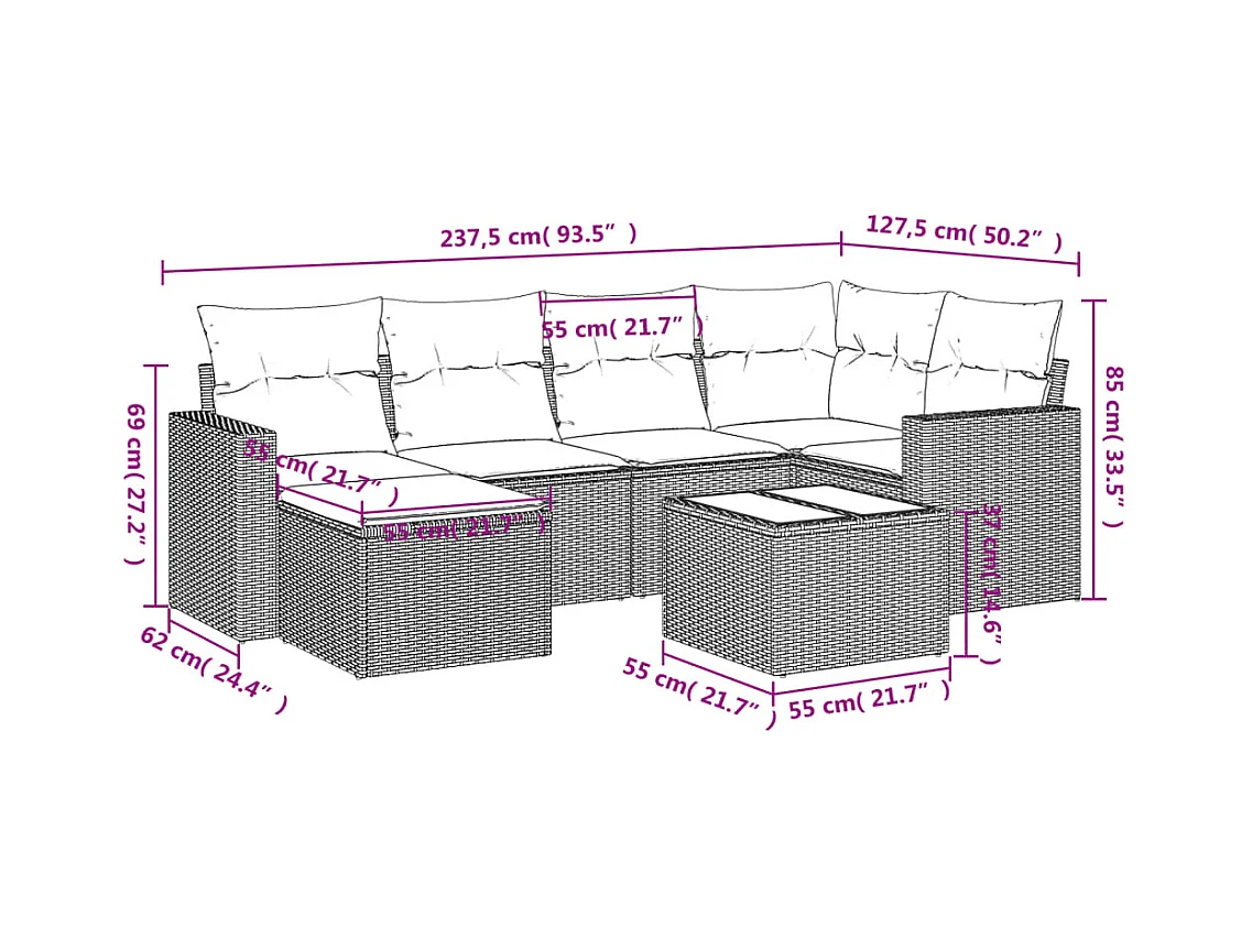 7-tlg. Garten-Sofagarnitur mit Kissen Braun Poly Rattan