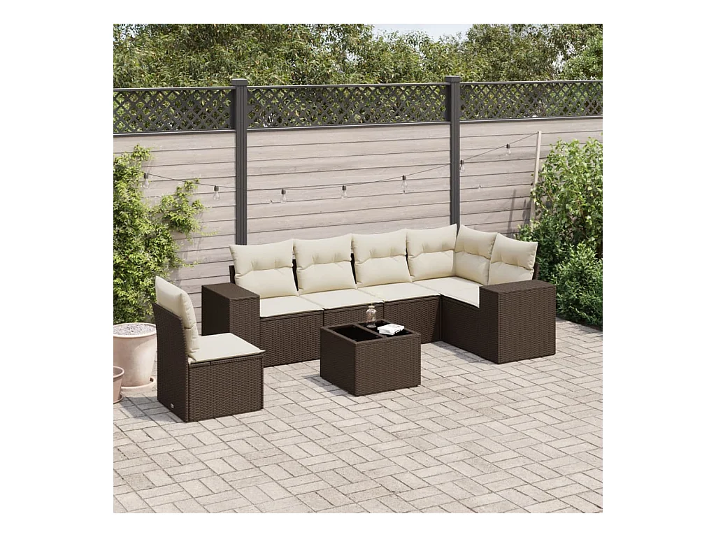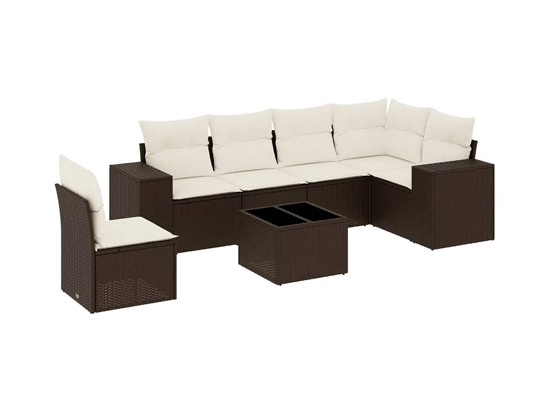 7-tlg. Garten-Sofagarnitur mit Kissen Braun Poly Rattan