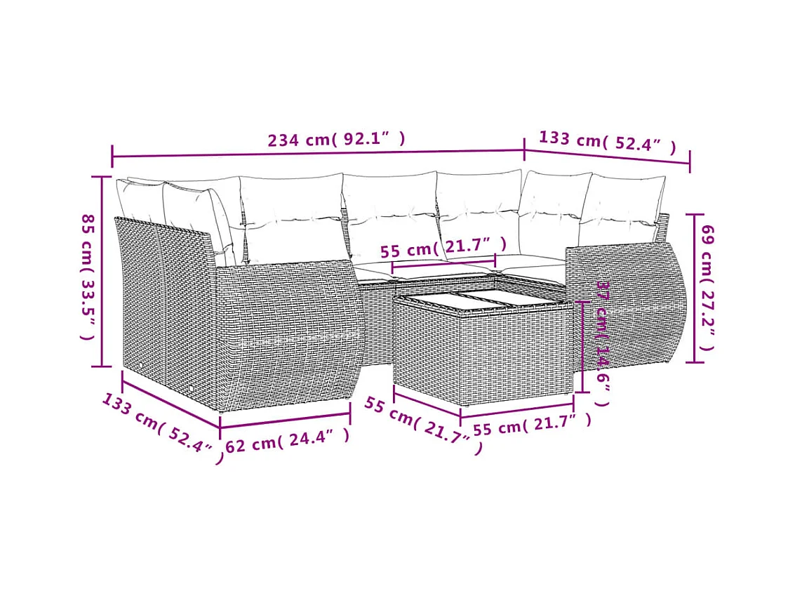7-tlg. Garten-Sofagarnitur mit Kissen Braun Poly Rattan