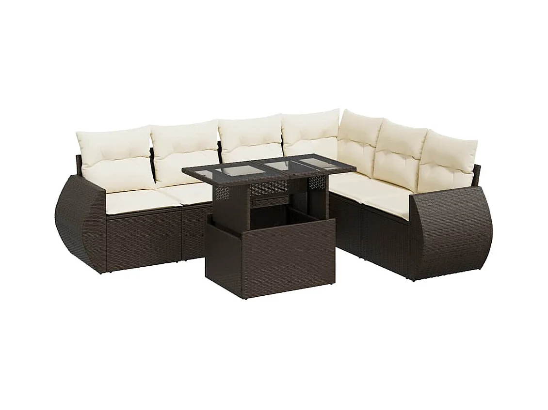 7-tlg. Garten-Sofagarnitur mit Kissen Braun Poly Rattan