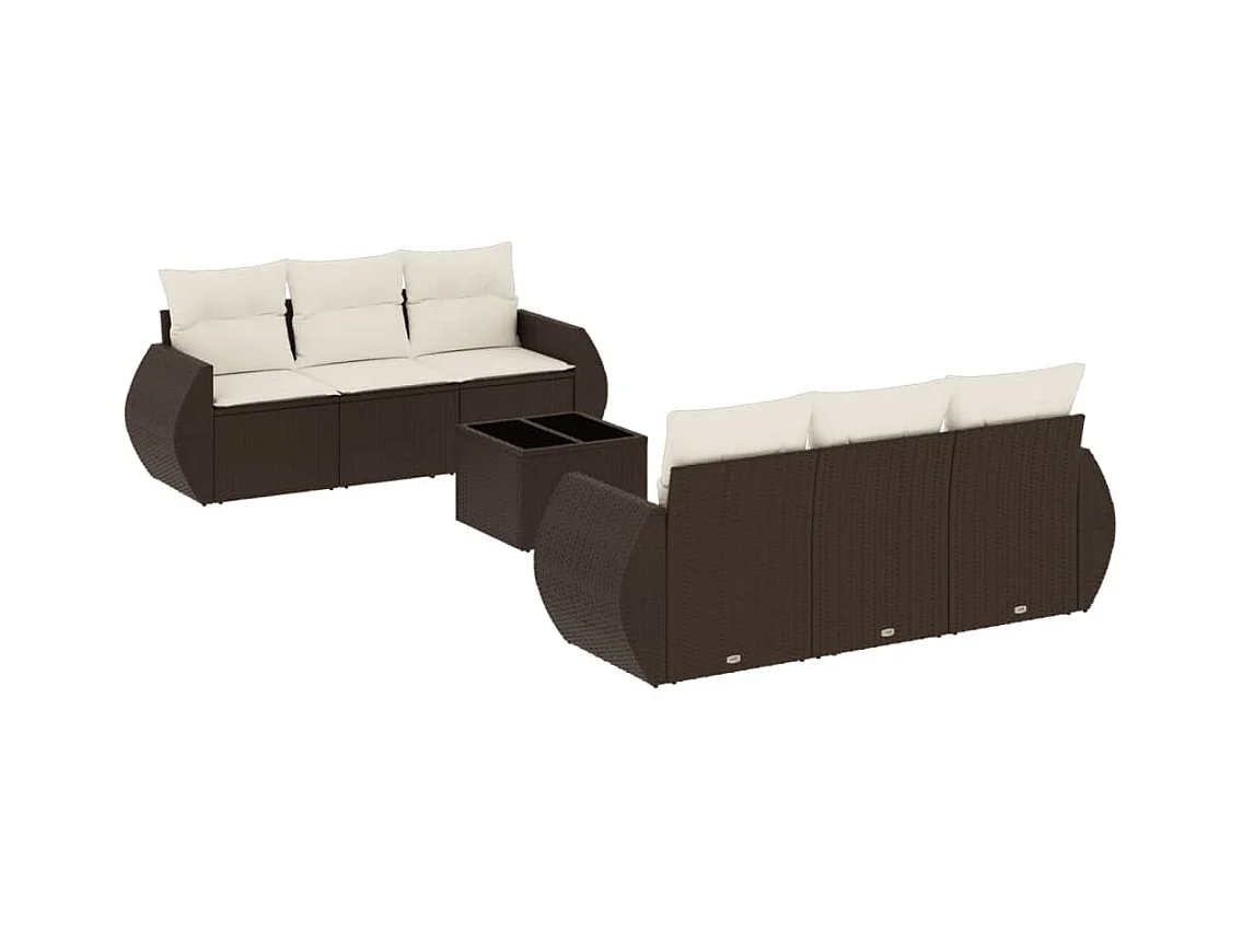 7-tlg. Garten-Sofagarnitur mit Kissen Braun Poly Rattan