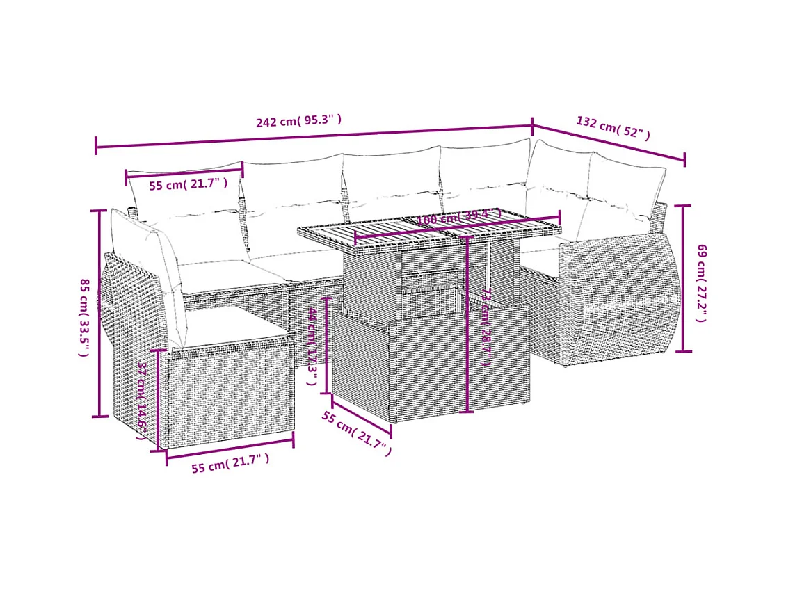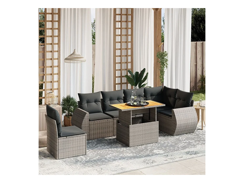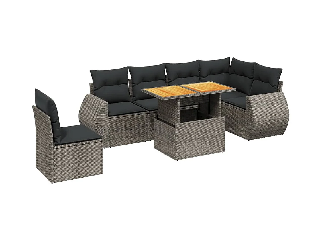 7-tlg. Garten-Sofagarnitur mit Kissen Grau Poly Rattan