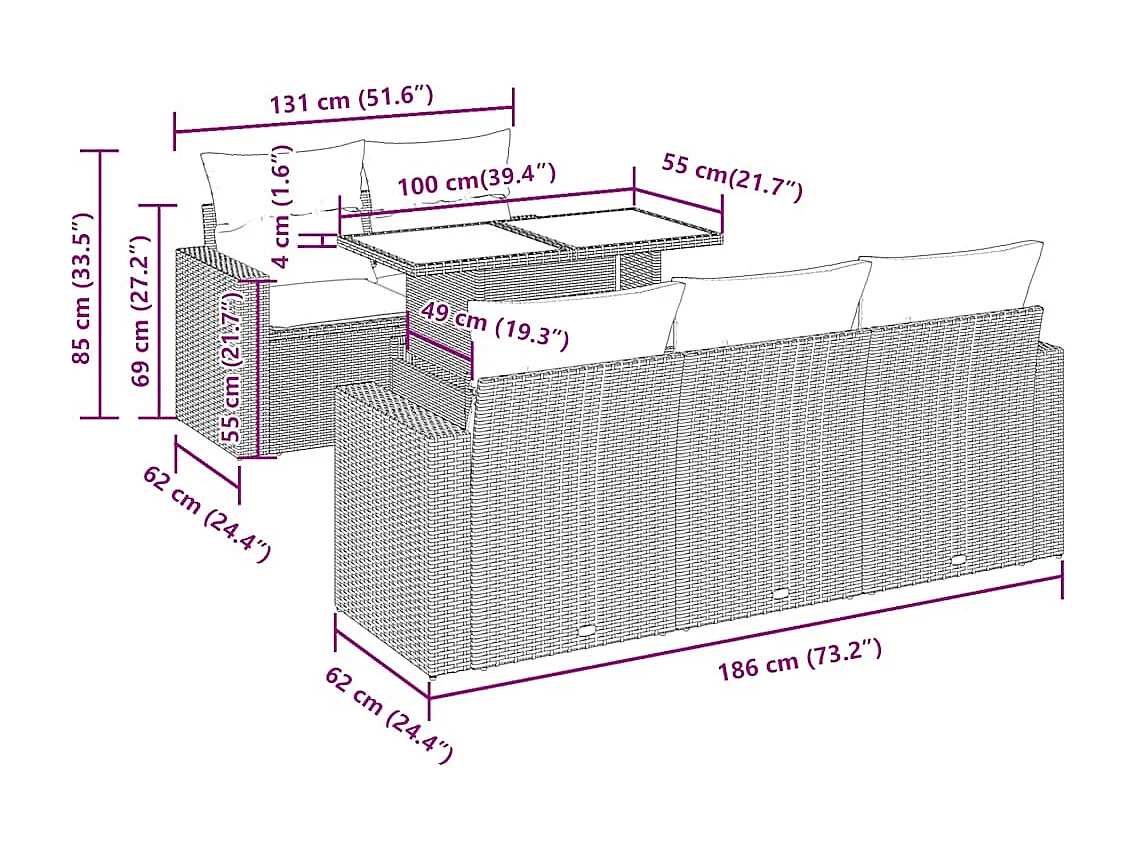 7-tlg. Garten-Sofagarnitur mit Kissen Hellgrau Poly Rattan
