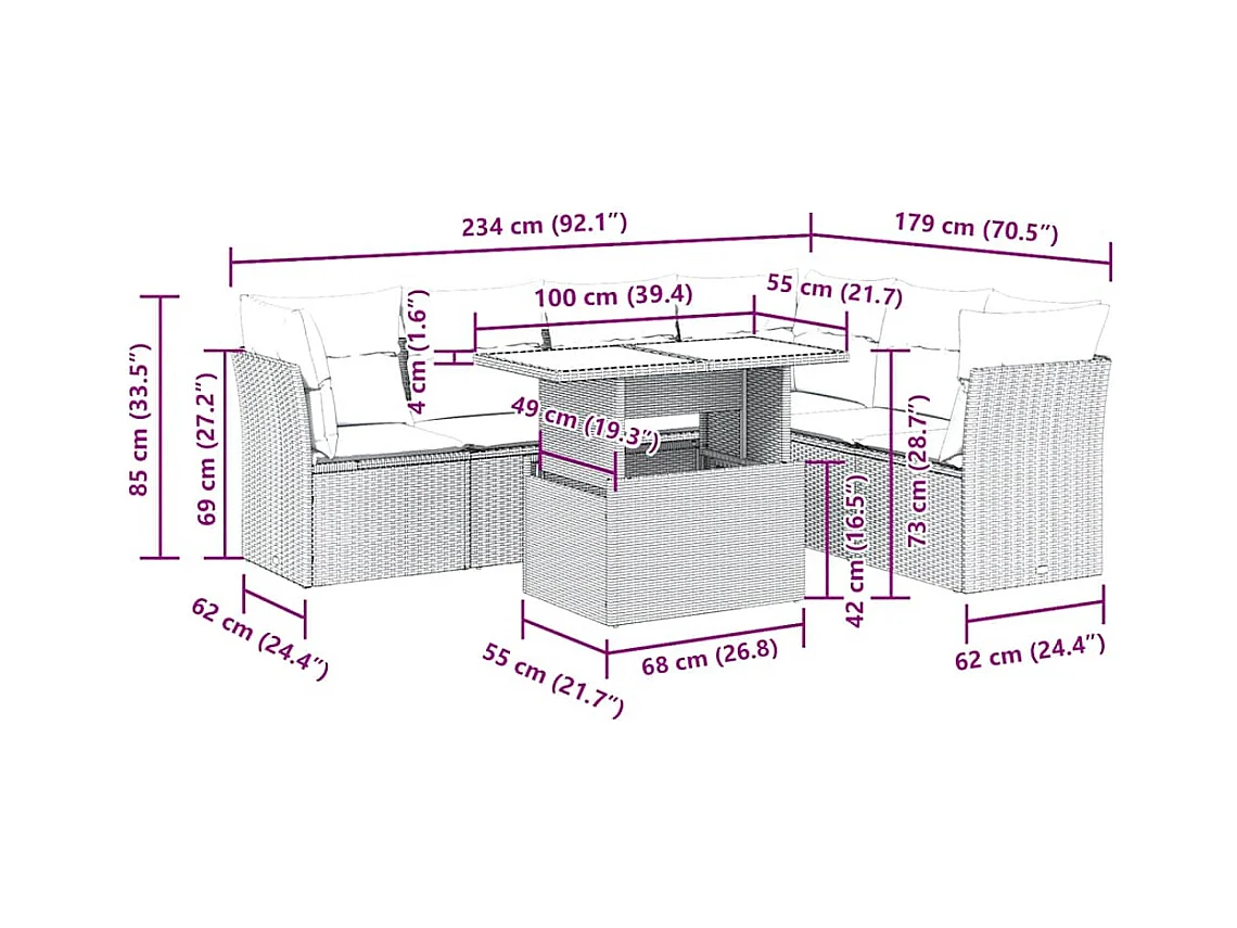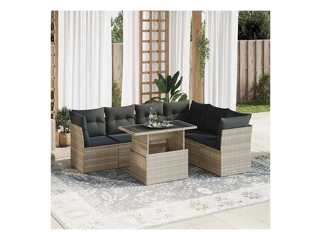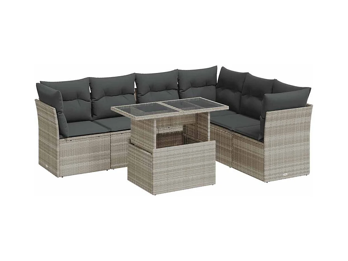 7-tlg. Garten-Sofagarnitur mit Kissen Hellgrau Poly Rattan