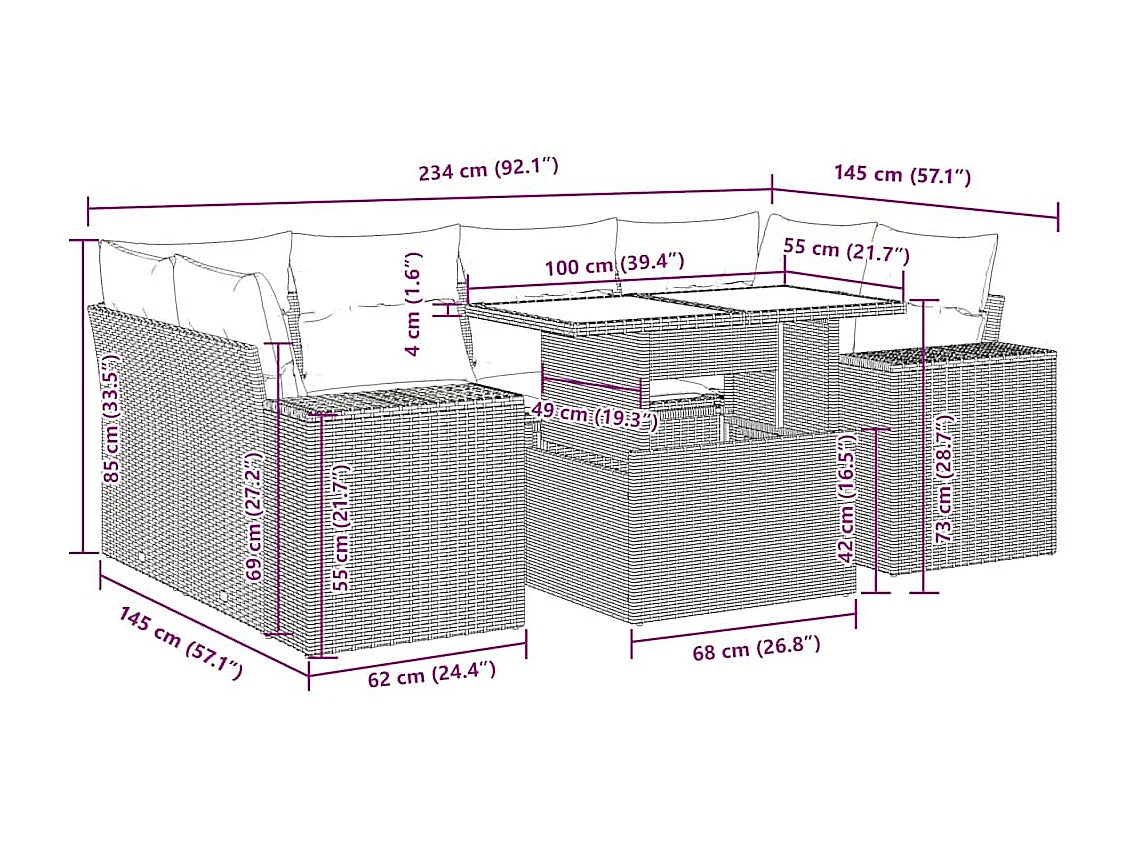 7-tlg. Garten-Sofagarnitur mit Kissen Schwarz Poly Rattan