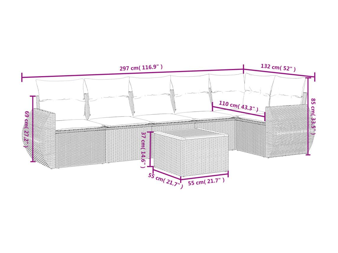 7-tlg. Garten-Sofagarnitur mit Kissen Schwarz Poly Rattan