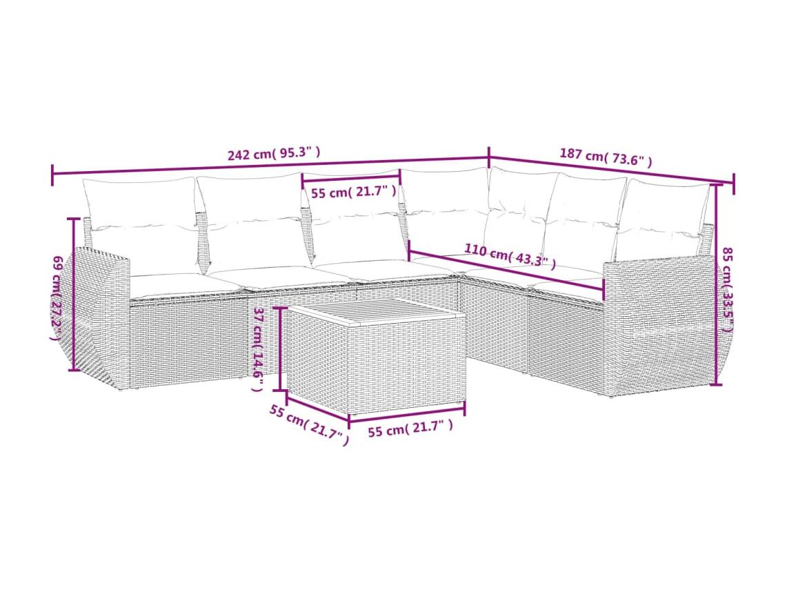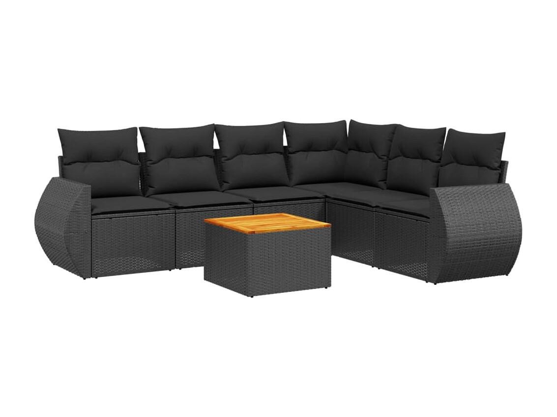 7-tlg. Garten-Sofagarnitur mit Kissen Schwarz Poly Rattan