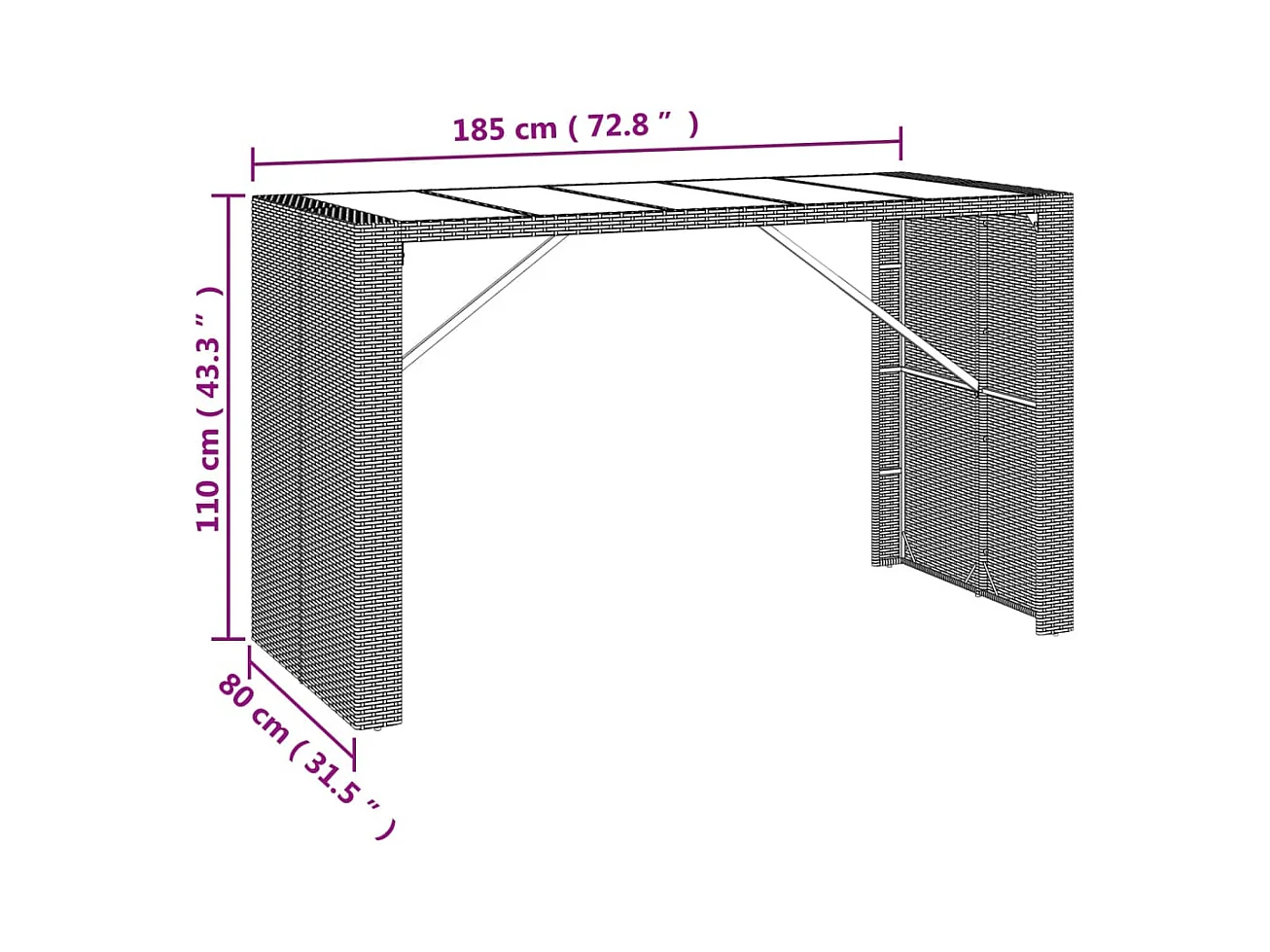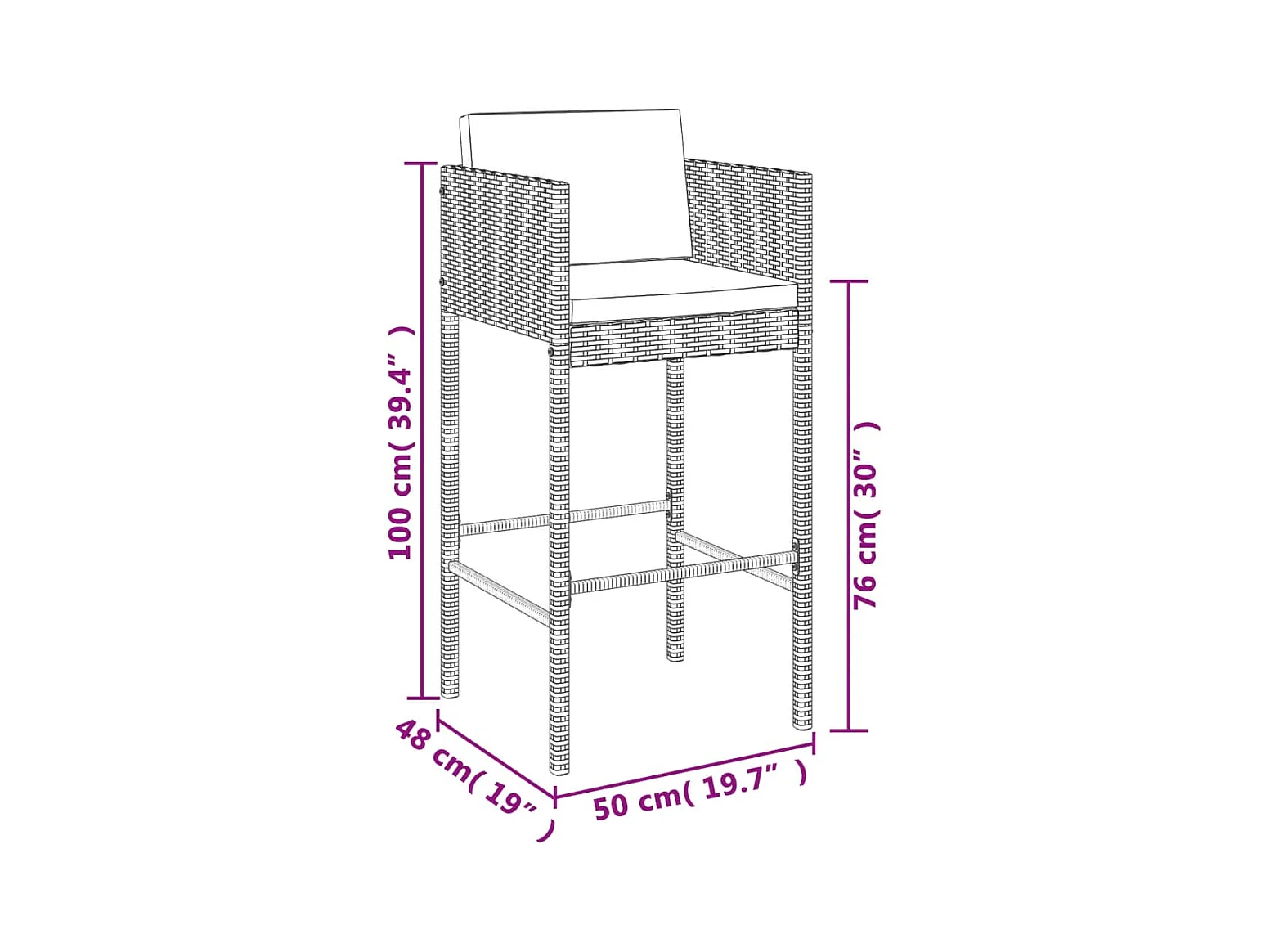 7-tlg. Gartenbar-Set mit Kissen Braun Poly Rattan