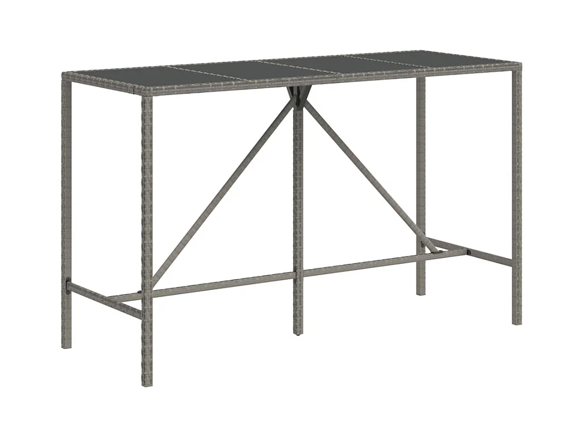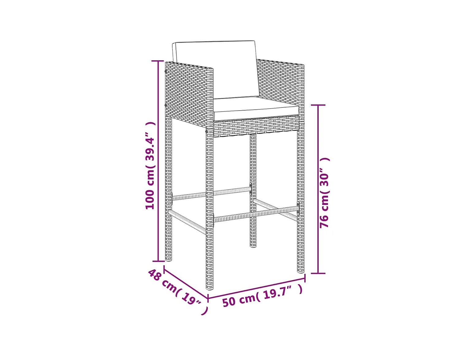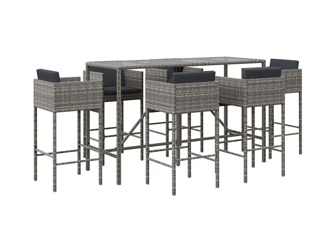 7-tlg. Gartenbar-Set mit Kissen Grau Poly Rattan