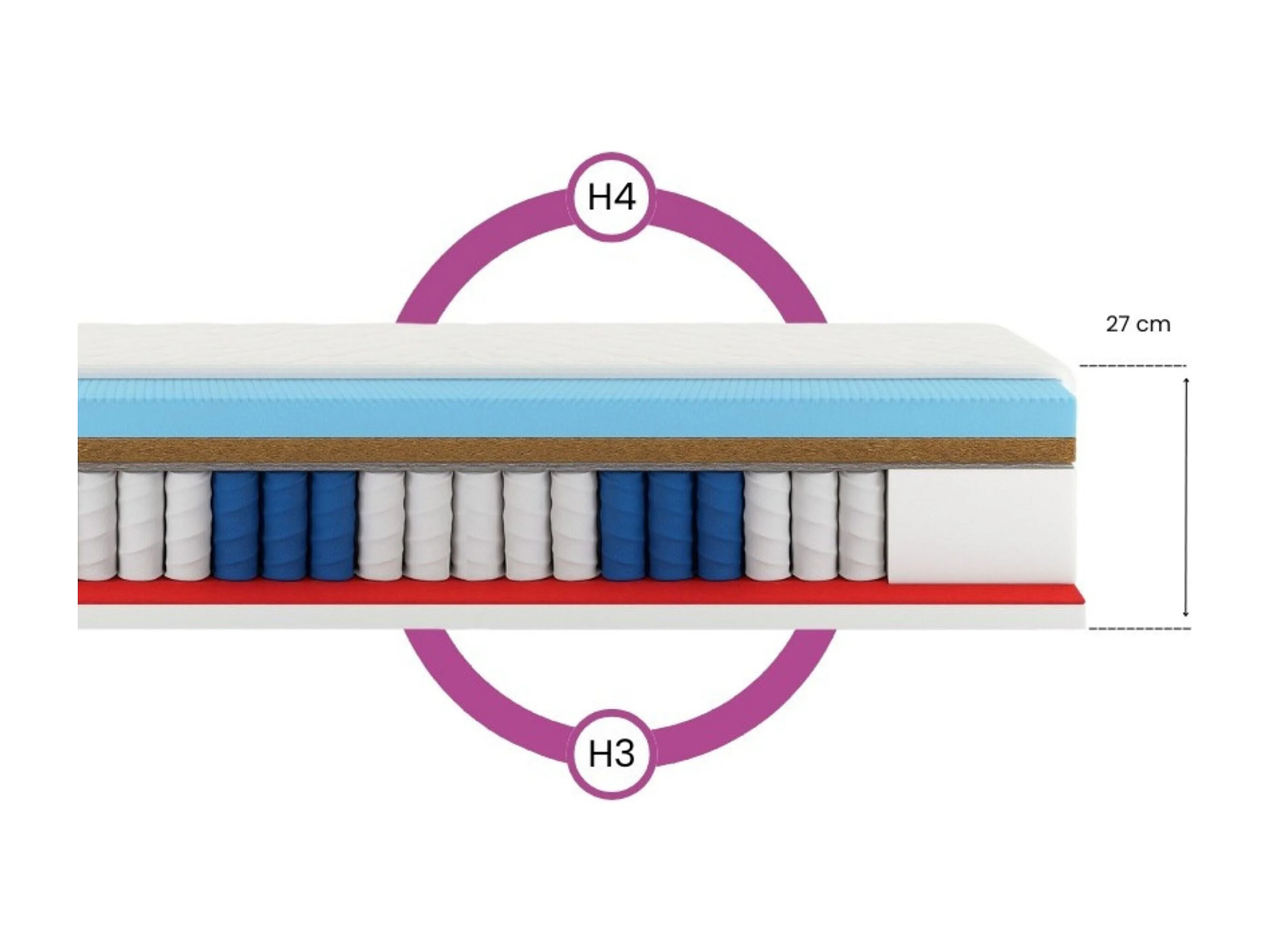 7 Zonen Kokos-Taschenfederkernmatratze Premium 80x200x27 cm, Matratze Härtegrad H3/H4, Farbe: Schwarz, inkl. Bezug