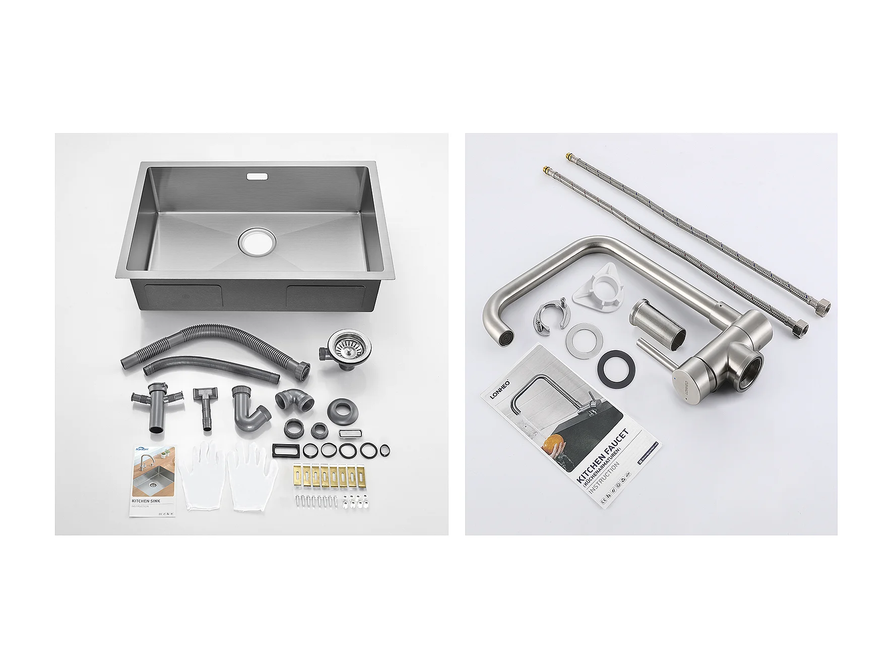 70 * 44 * 19 cm Einzelbecken-Küchenspüle, Einbau-/Blumen-/Unterbauspüle, mit Siphon/Überlauf, + 360 ° drehbarer dunkelgrauer Küchenarmatur mit ausziehbarer Brause