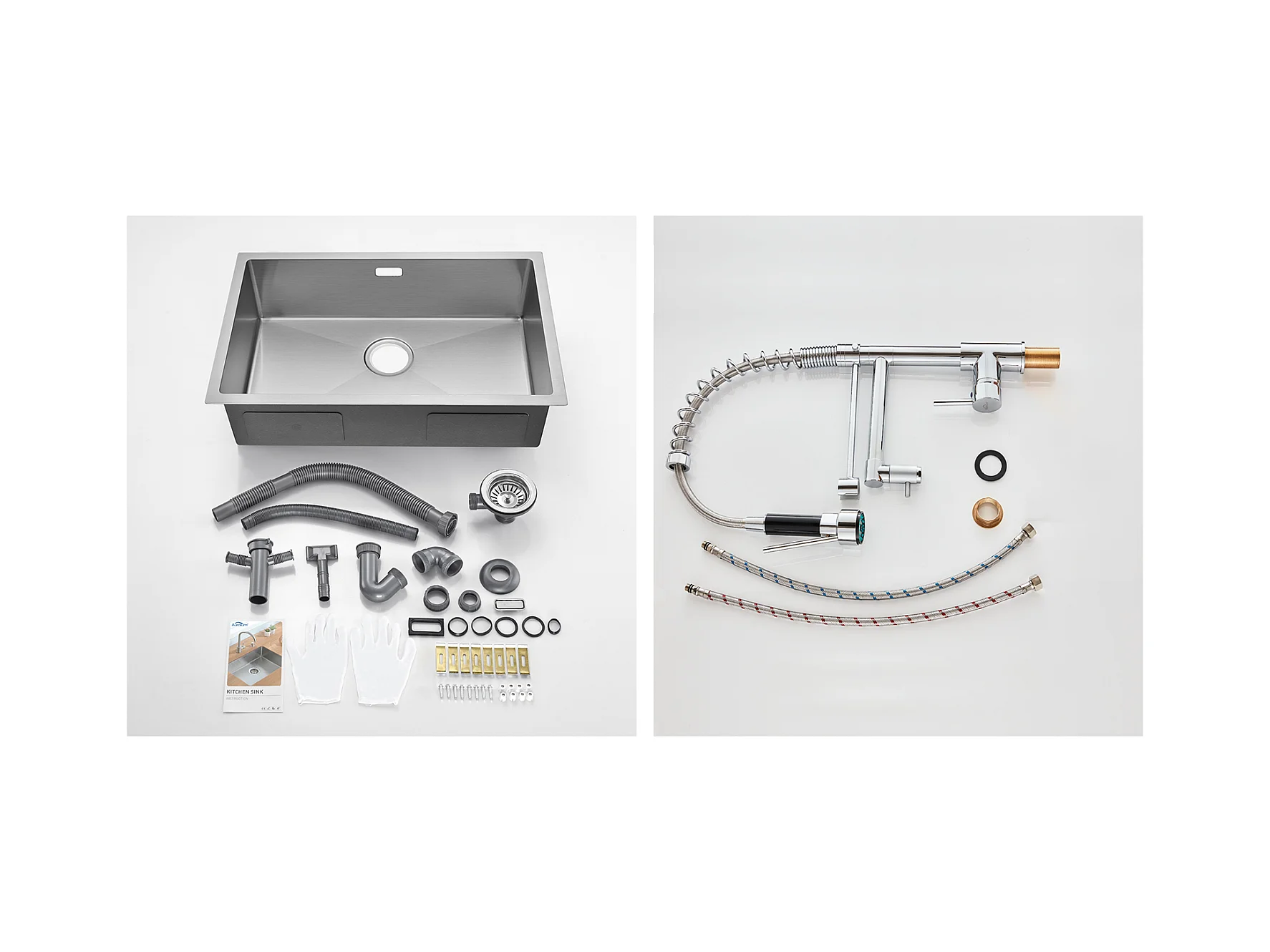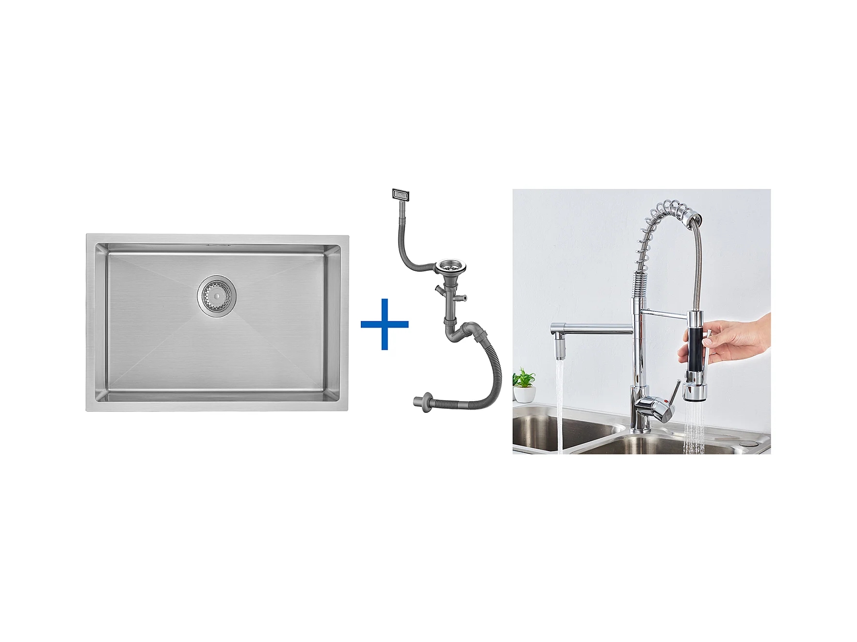 70 * 44 * 19 cm Einzelbecken-Küchenspüle, Einbau-/Blumen-/Unterbauspüle, mit Siphon/Überlauf, gebürstet + 360 ° drehbare Küchenarmatur mit ausziehbarer Brause