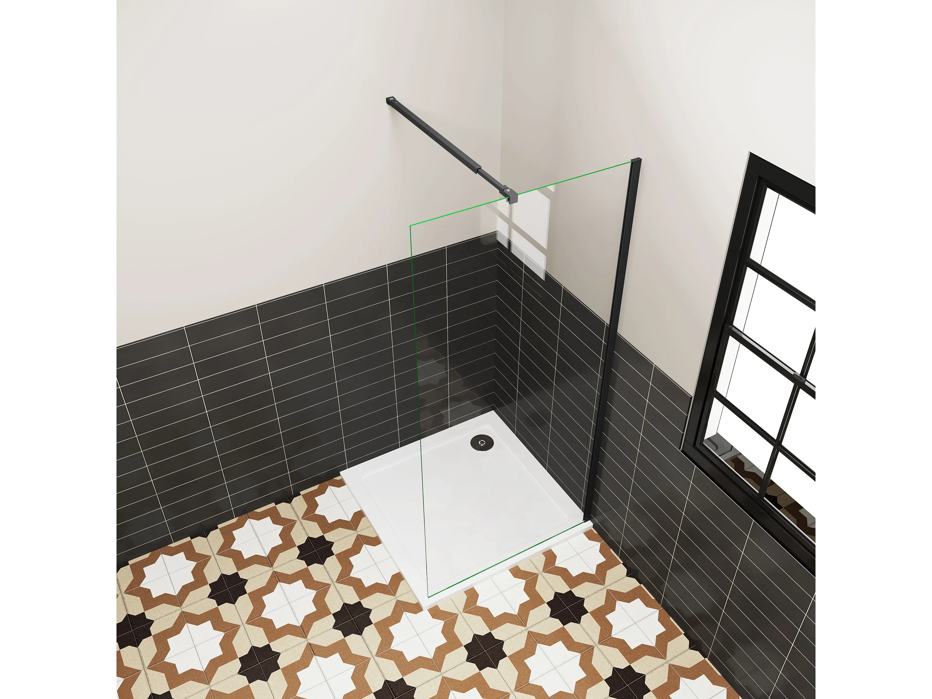 70x185 cm Sicherheitsglas walkin Duschtür Dsuche Duschabtrennung 730-1200mm Stützstange Schwarz