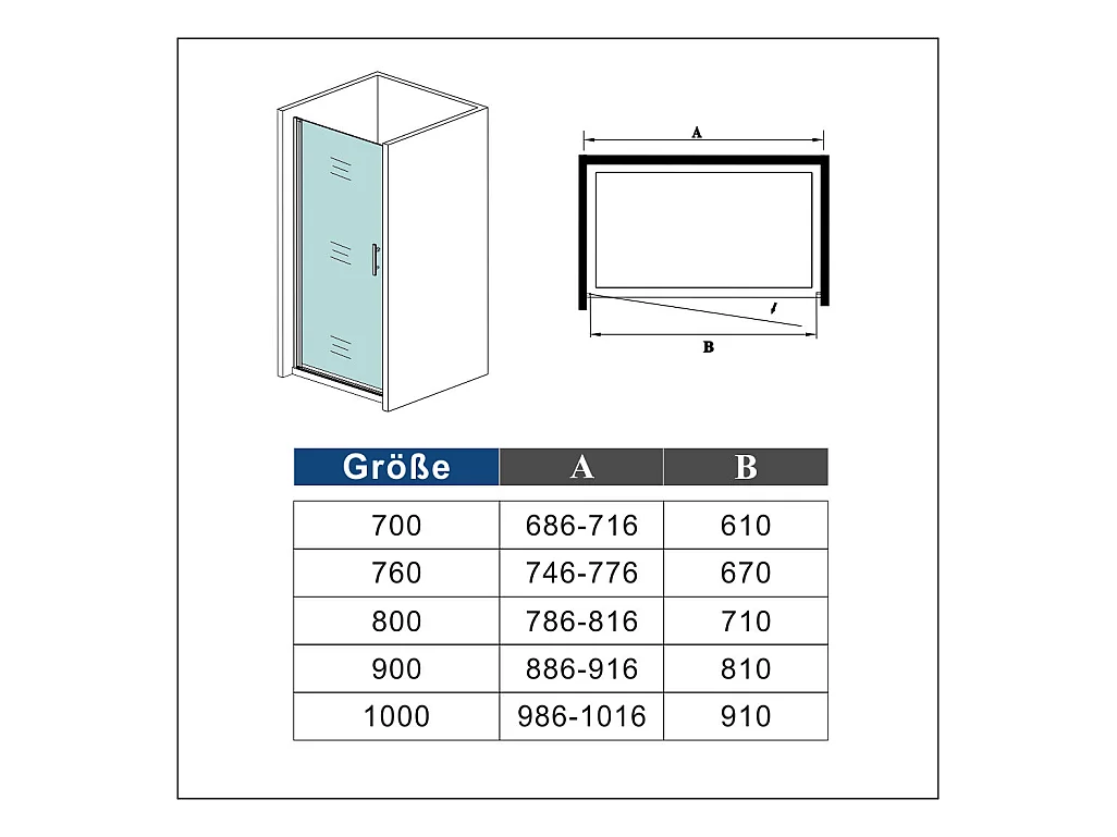 70x185cm Duschtrennwand Drehtür Glastür Nischentür Duschtür Duschkabine weiß matt mit rechtsseitigem Aluminiumprofil
