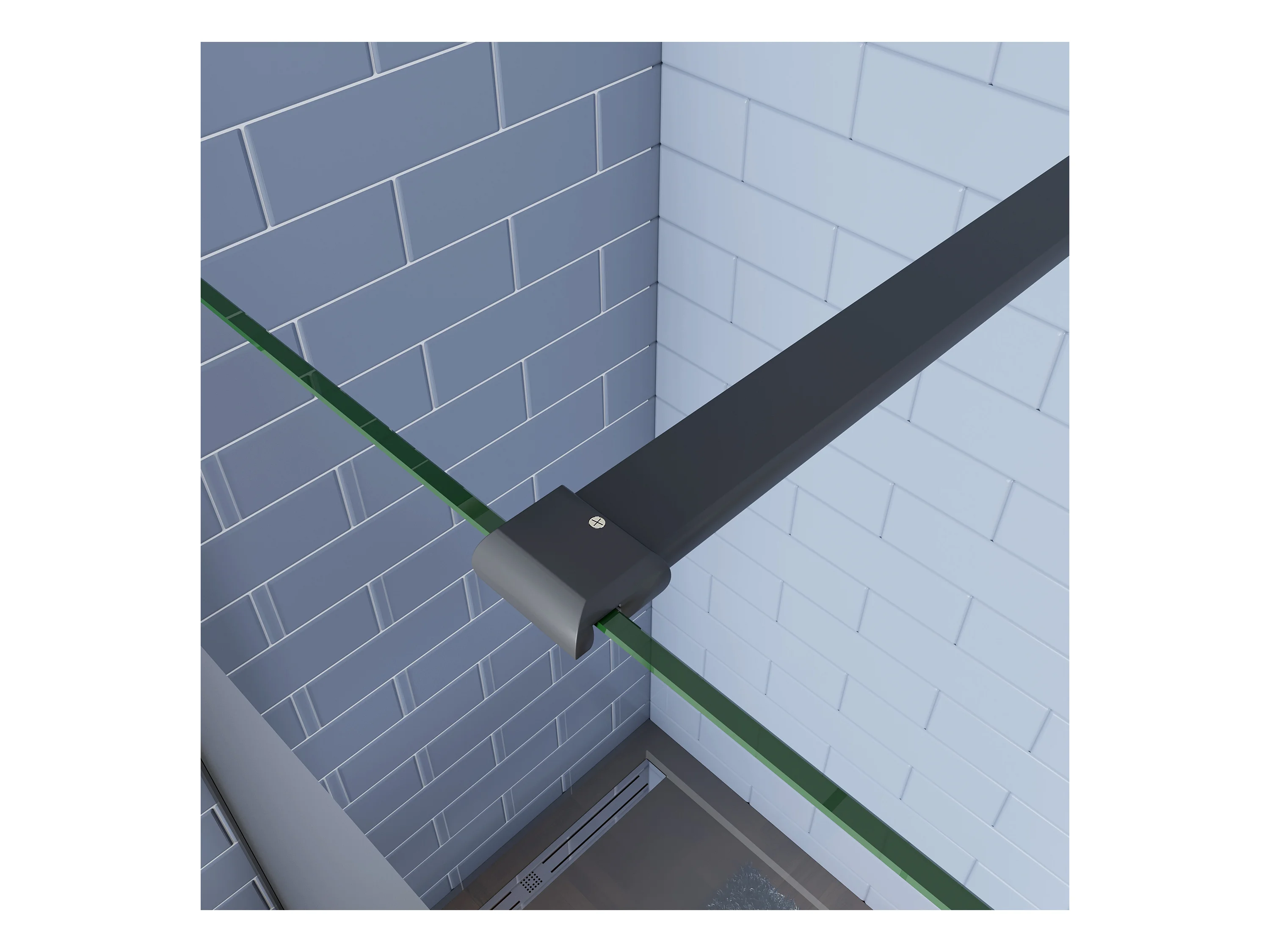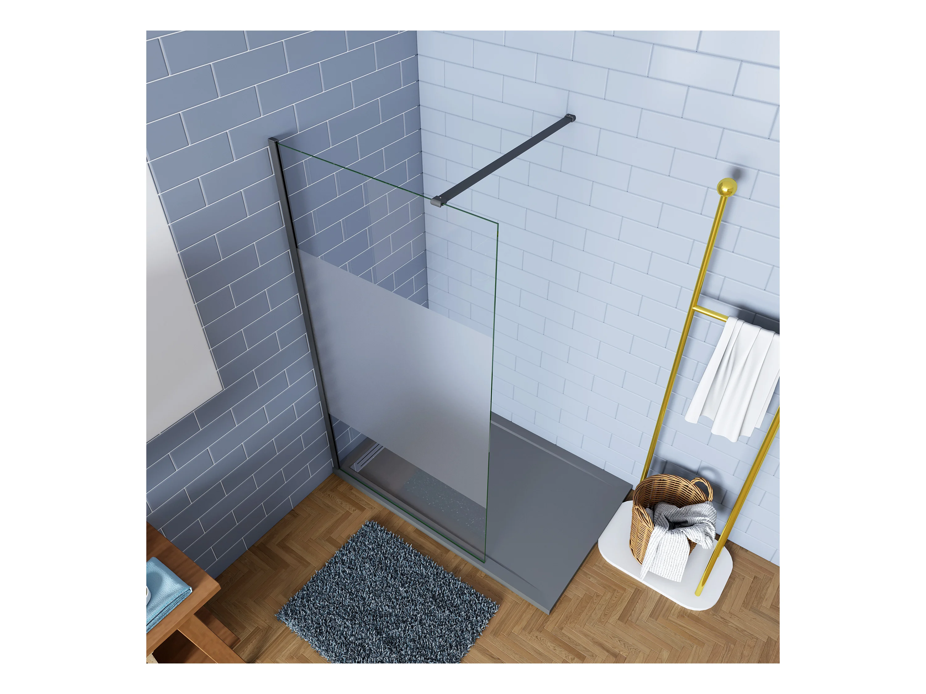 70x200cm Schwarzrahmen Duschabtrennung Walk In 8mm Nano ESG Milchglasstreifen Duschabtrennung + N Form 90cm Stabilisator Höhe 200cm