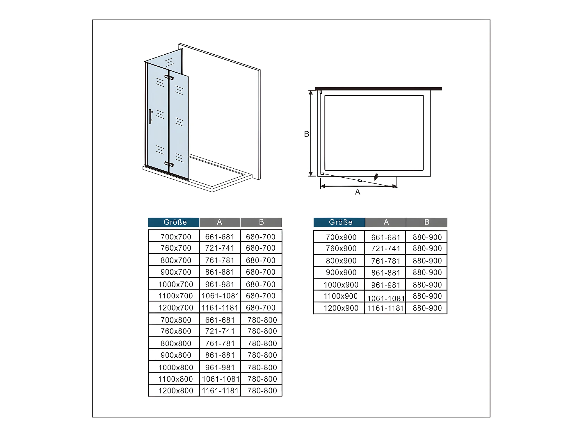 70x80x195cm Drehtür & Falttür(Walk in) Schwingtür Eckeinstieg Seitenwand Dusche Duschabtrennung