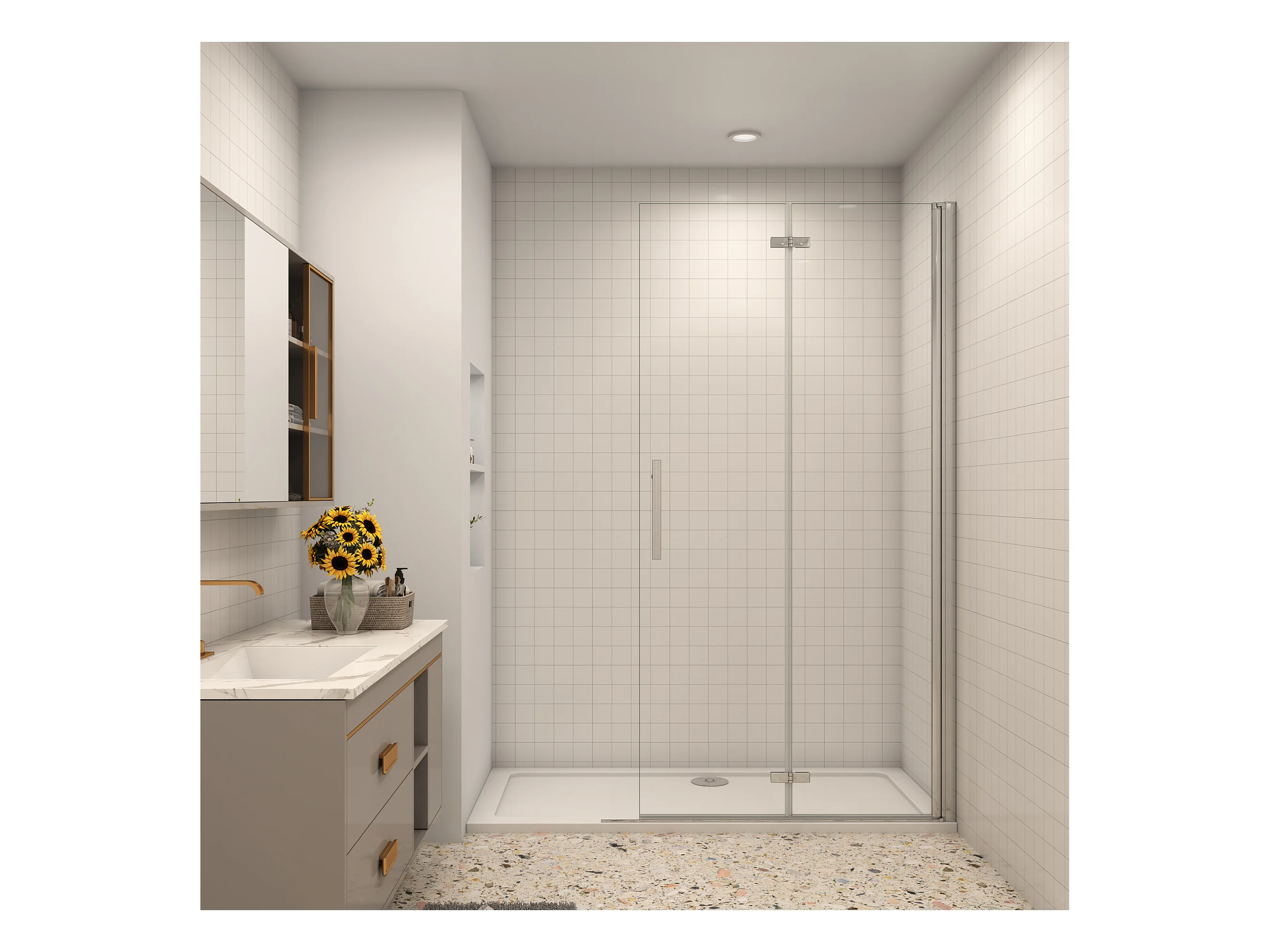 76x185cm Walk in Faltbar+drehbar Nano ESG Glas Duschwand Duschtür Duschabtrennung Dusche
