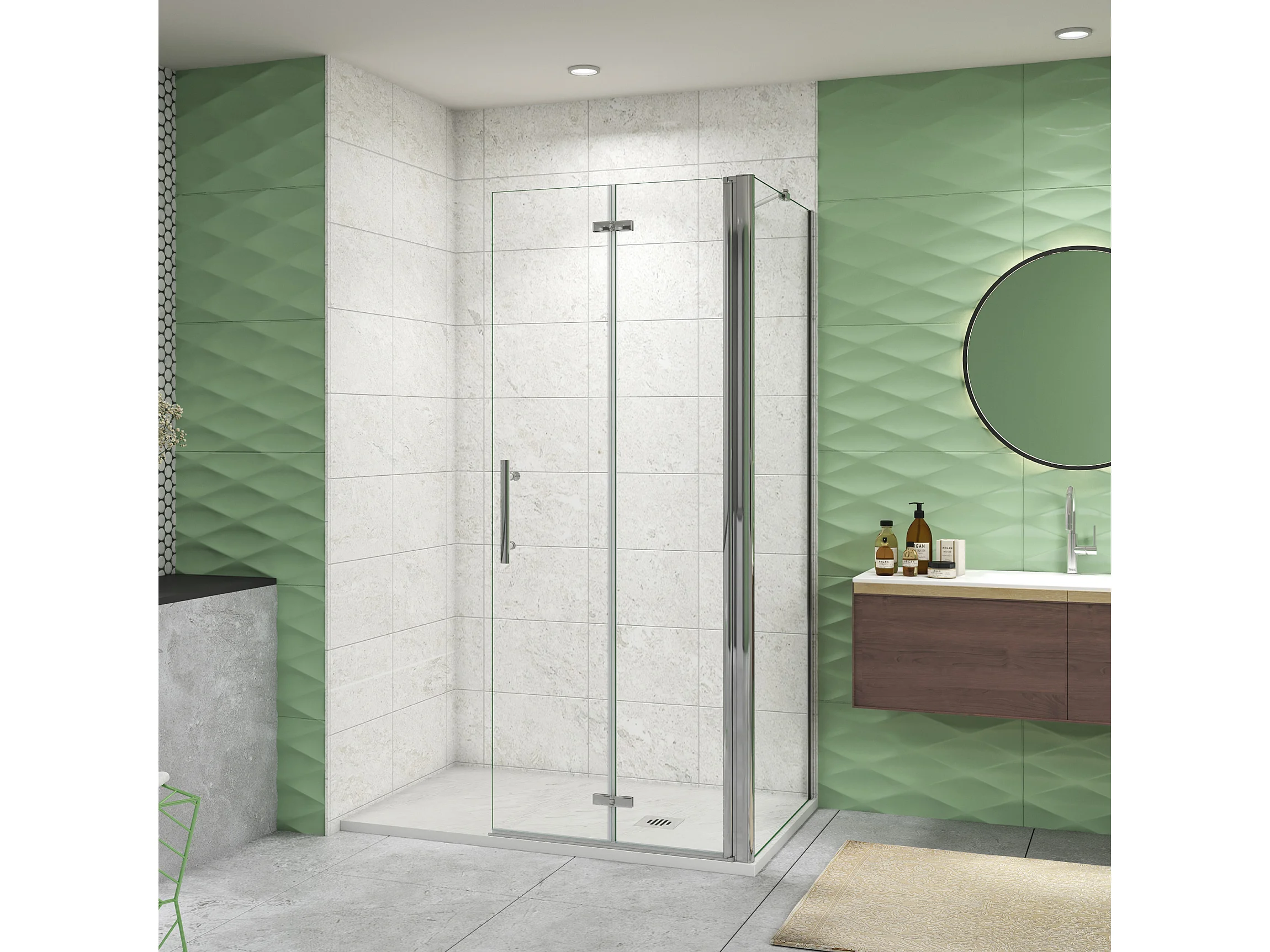 76x90x195cm Drehtür & Falttür(Walk in) Schwingtür Eckeinstieg Seitenwand Dusche Duschabtrennung