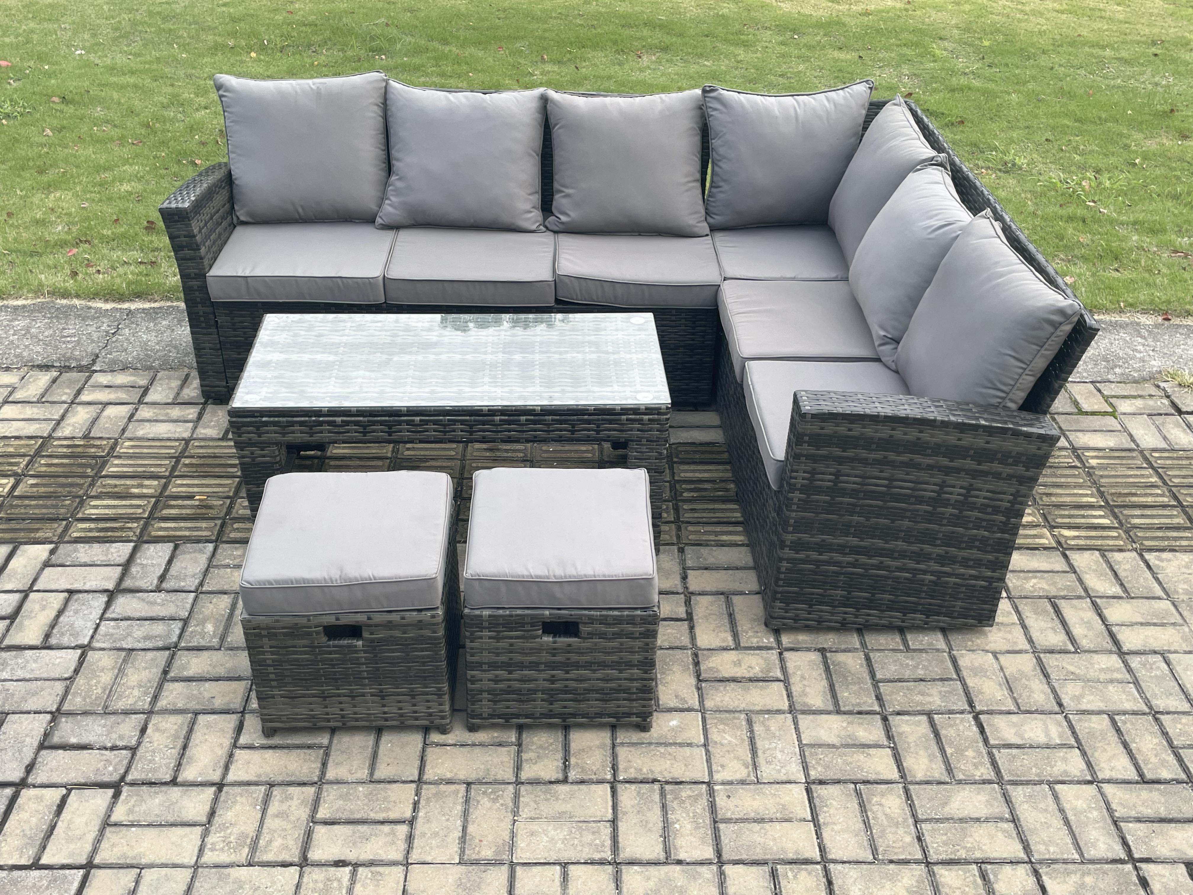 8 Seat Rattan Gartenmöbel Ecksofa Set Rattansofa Table Set mit 2 kleine Fußhockern Dunkelgrau Gemischt