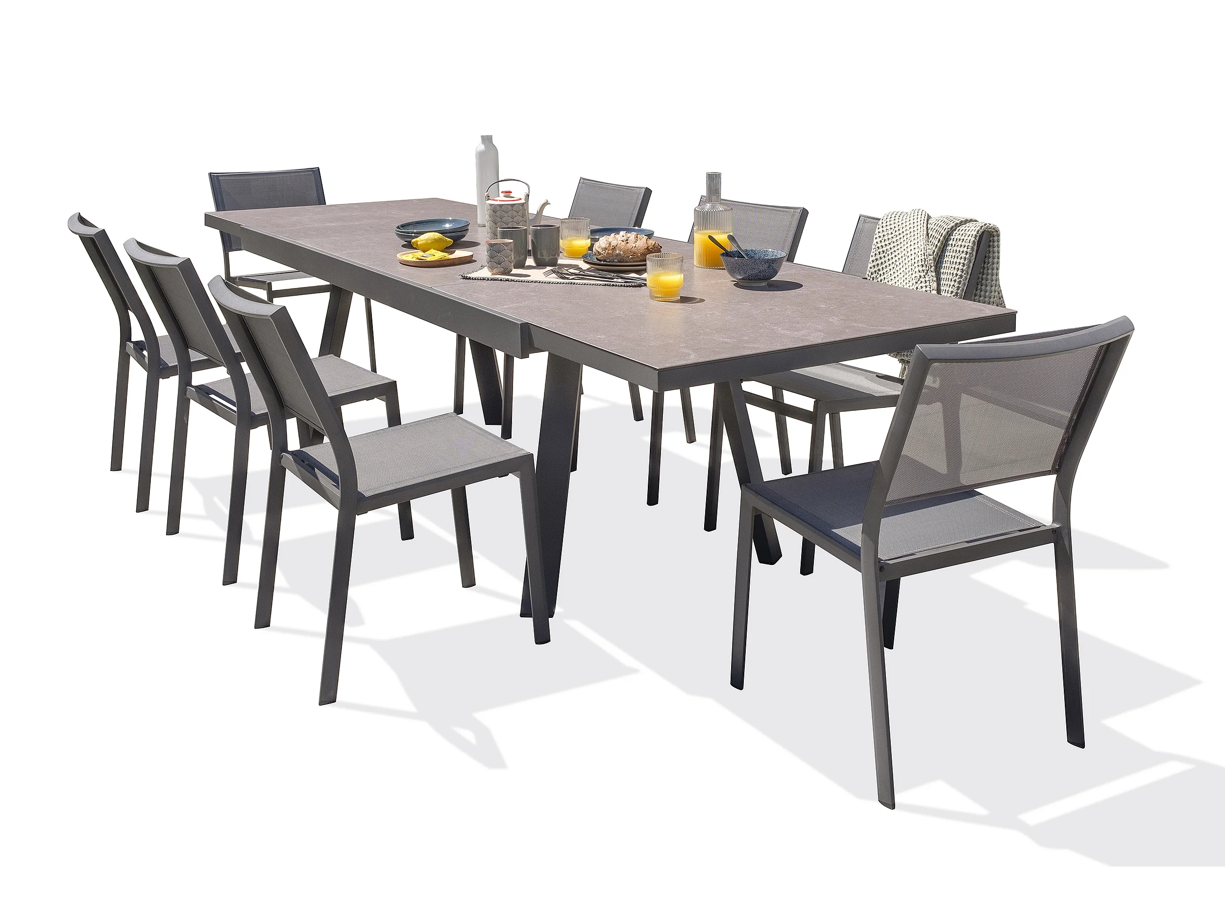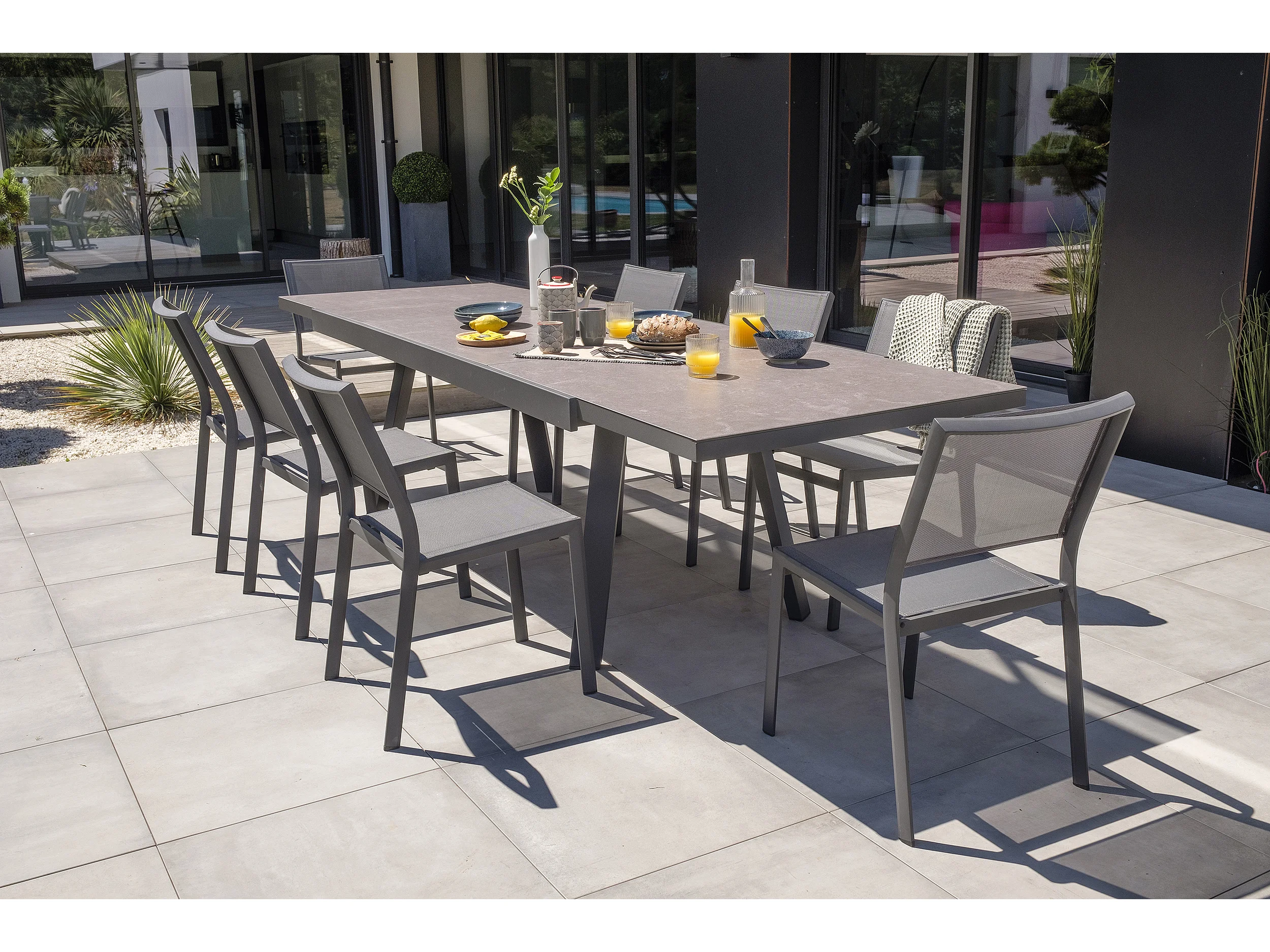 8-Sitzer-Garten-Essgruppe aus Keramik auf Glas
