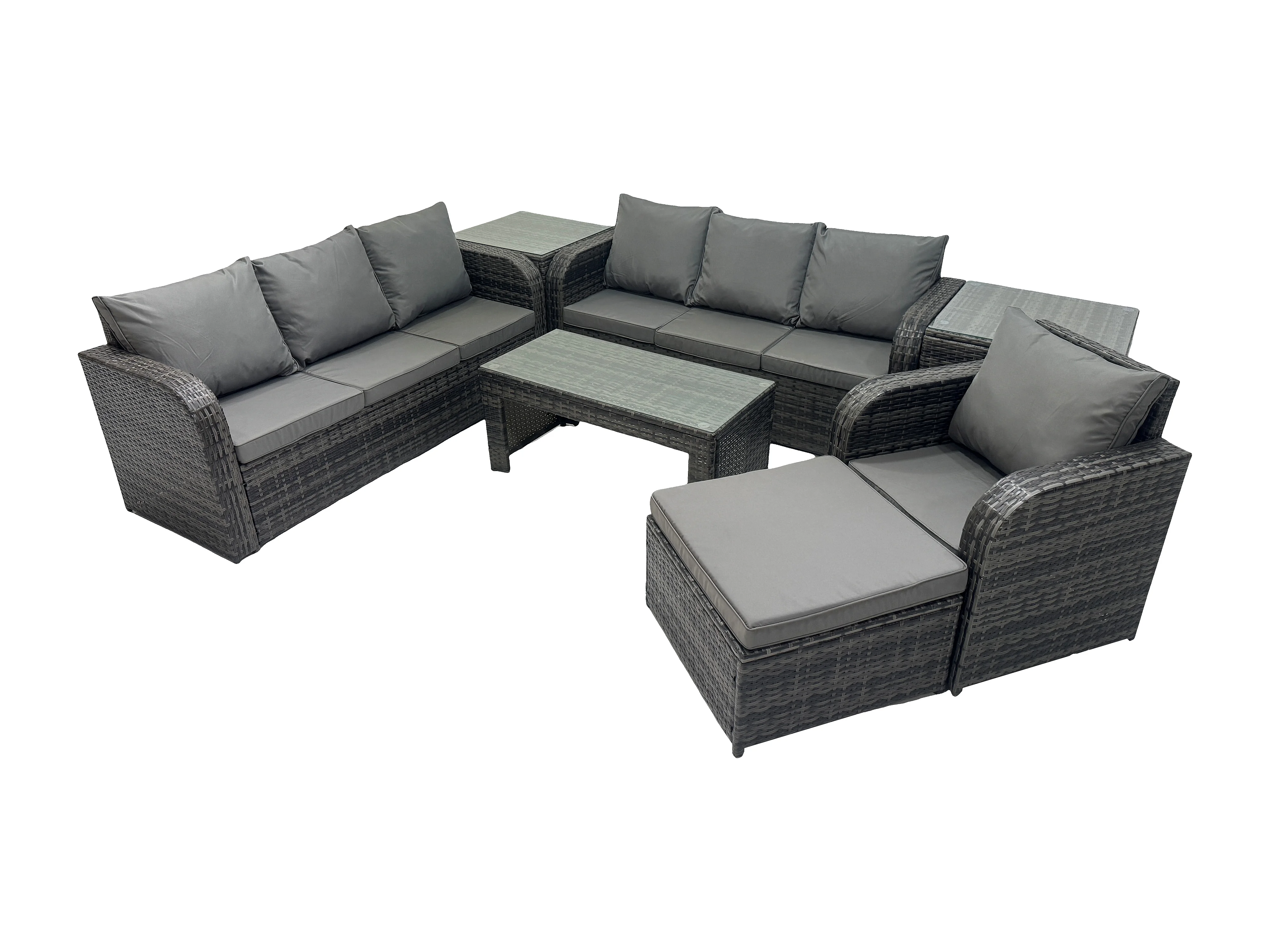 8-Sitzer Garten Sofa im Freien Set Polyrattan Gartenmöbel Set mit Rechteckiger Couchtisch 2 Großer Hockern 3-Sitzer Sofa 2 Beistelltischen Dunkelgrau Gemischt