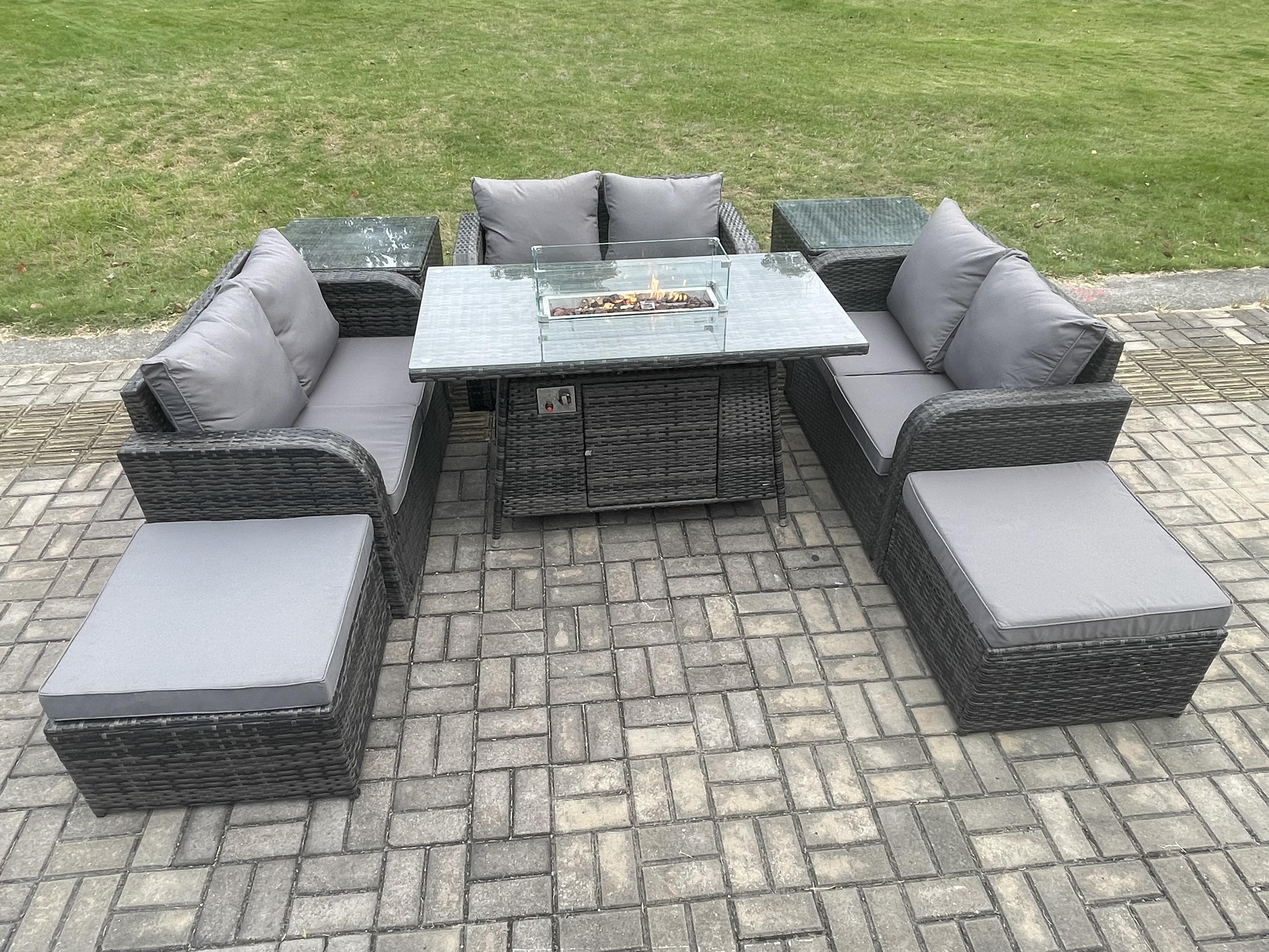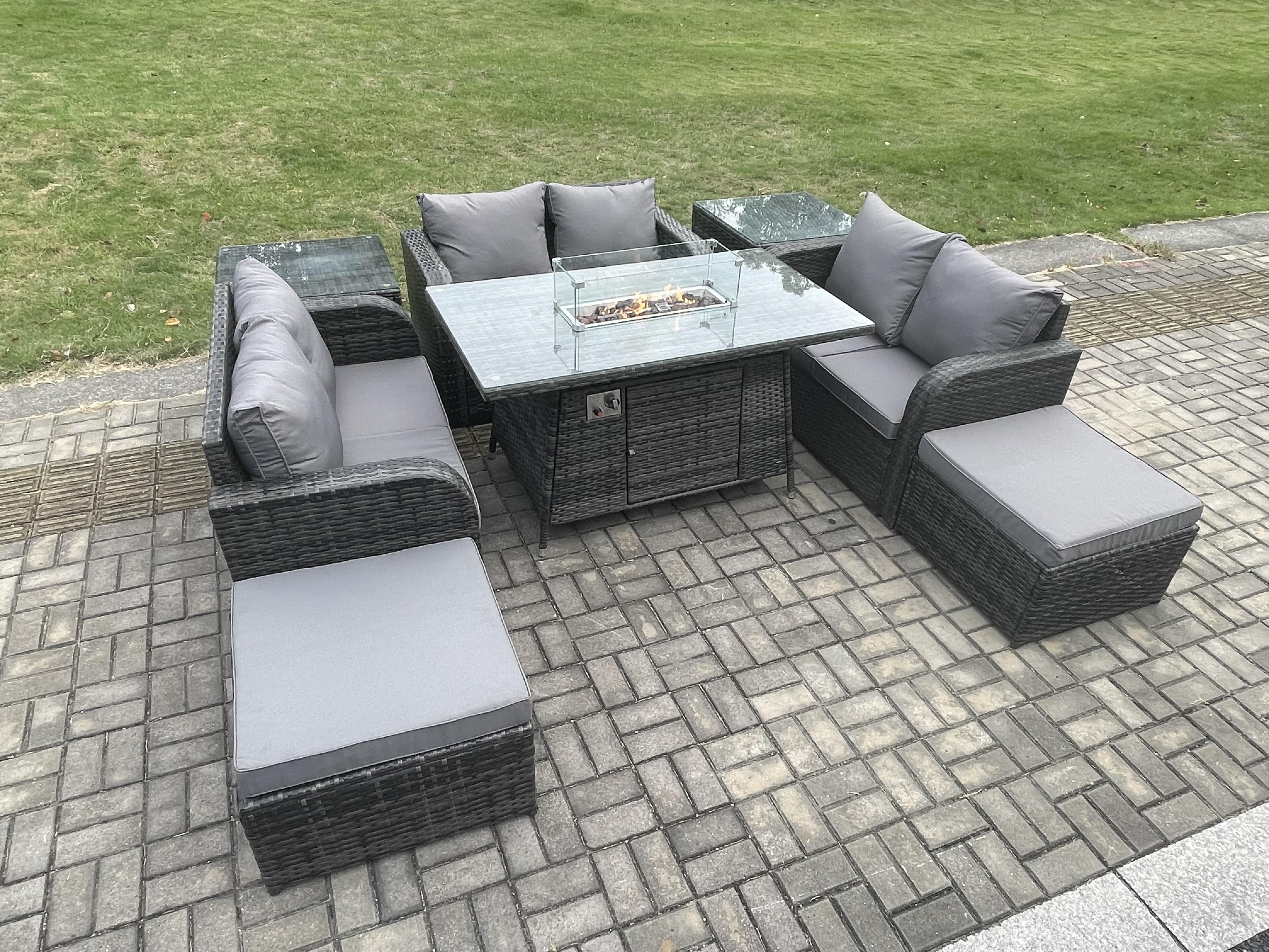 8-Sitzer Gartenmöbel im Freien mit Hocker Polyrattan Dunkelgrau