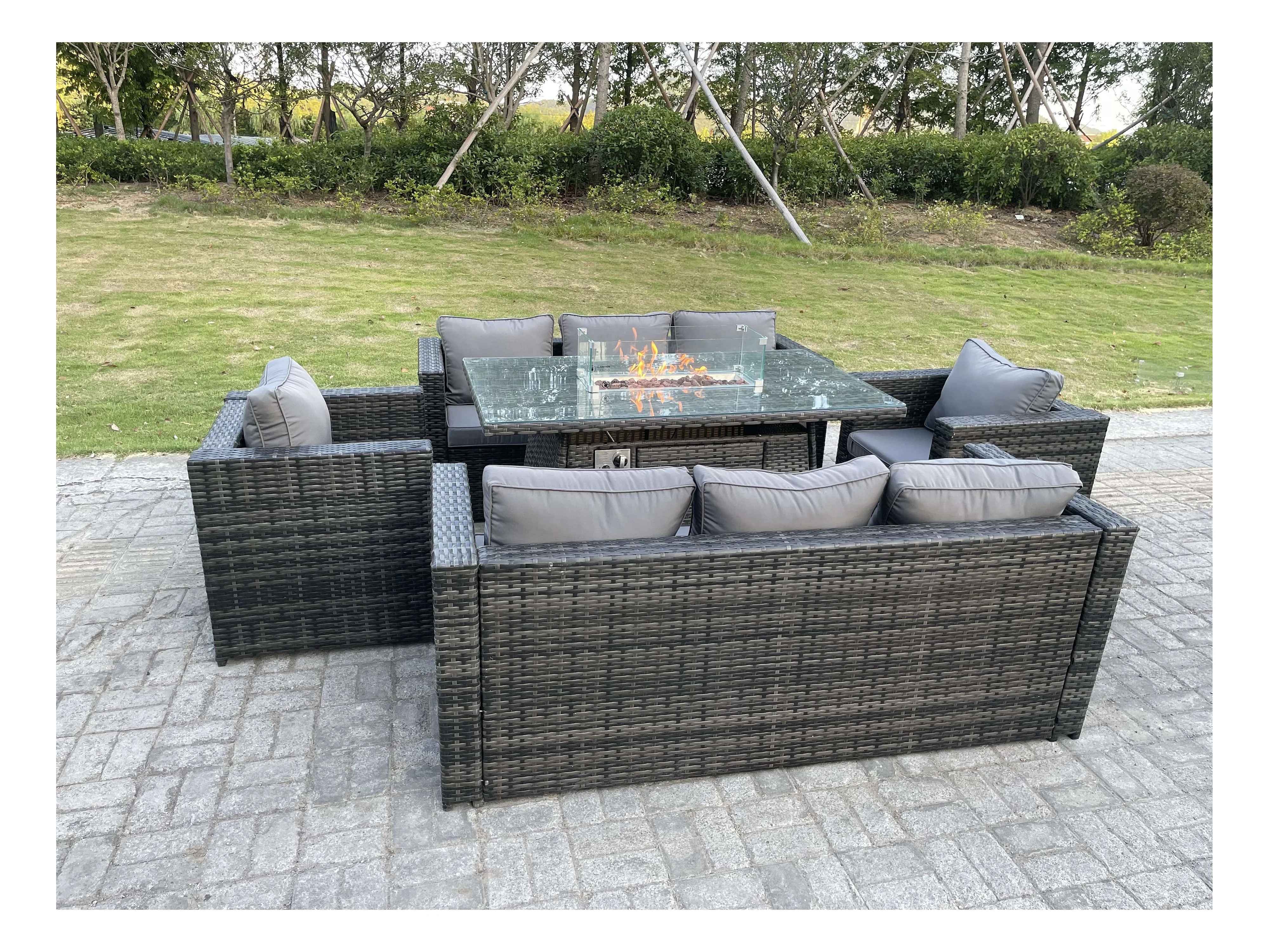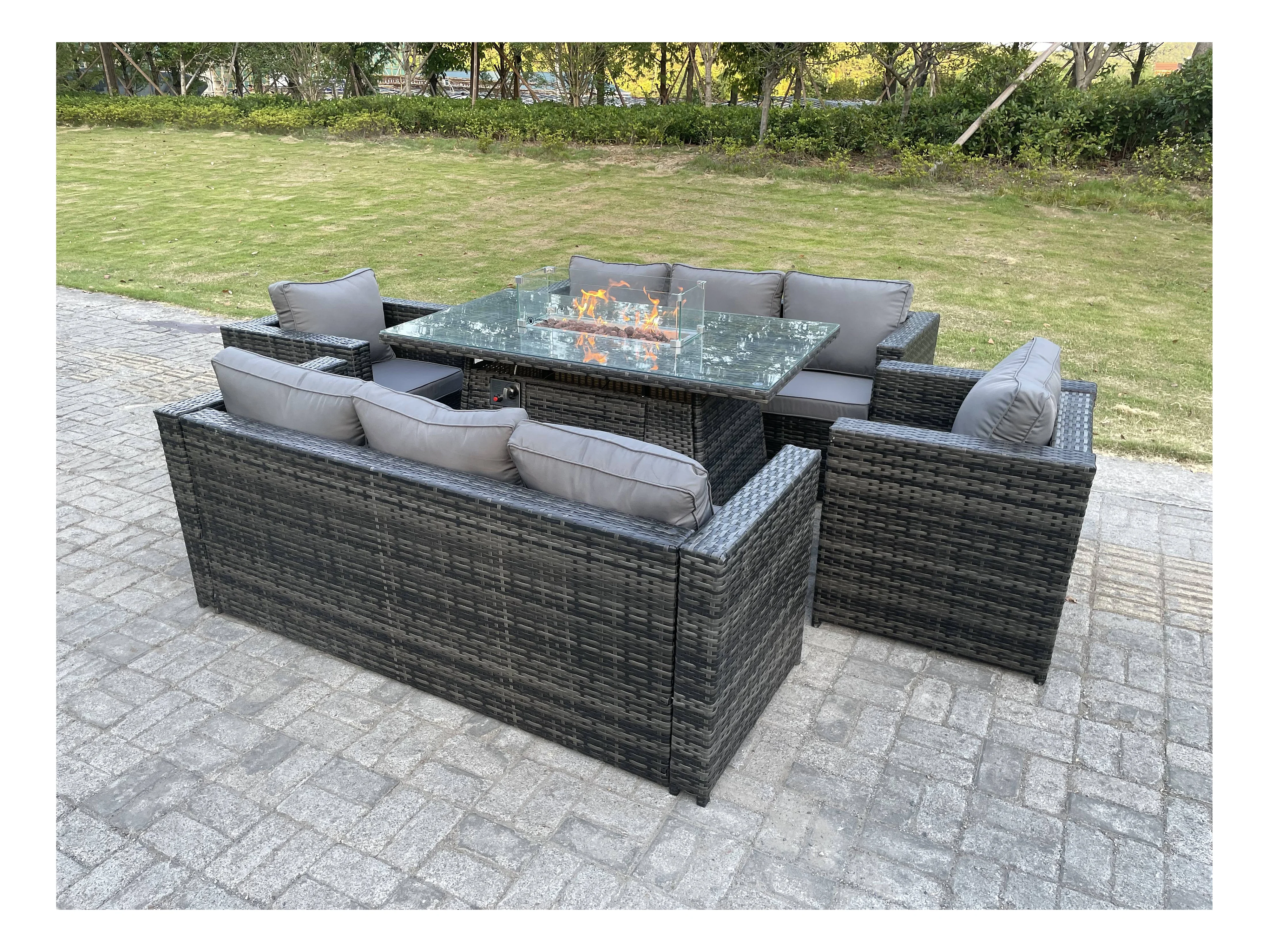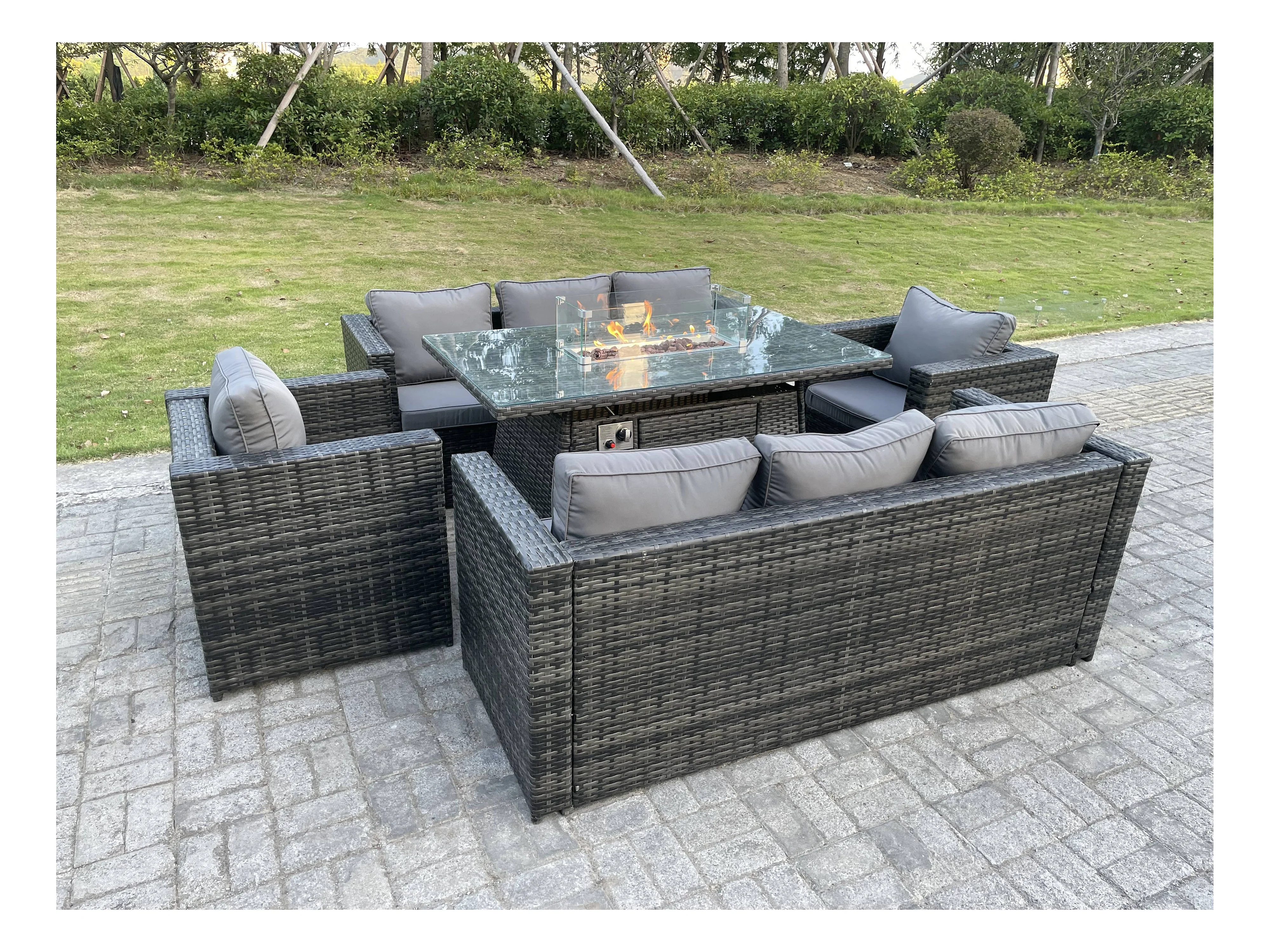 8-Sitzer Gartenmöbel im Freien mit Sofa Gas Feuertisch Hocker