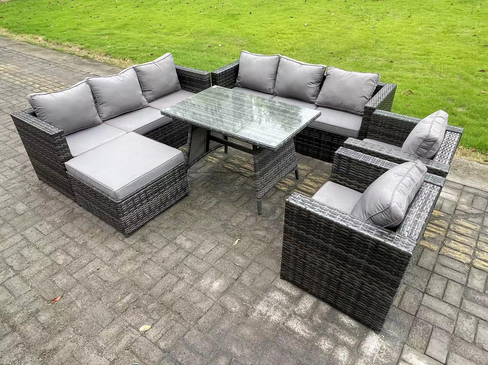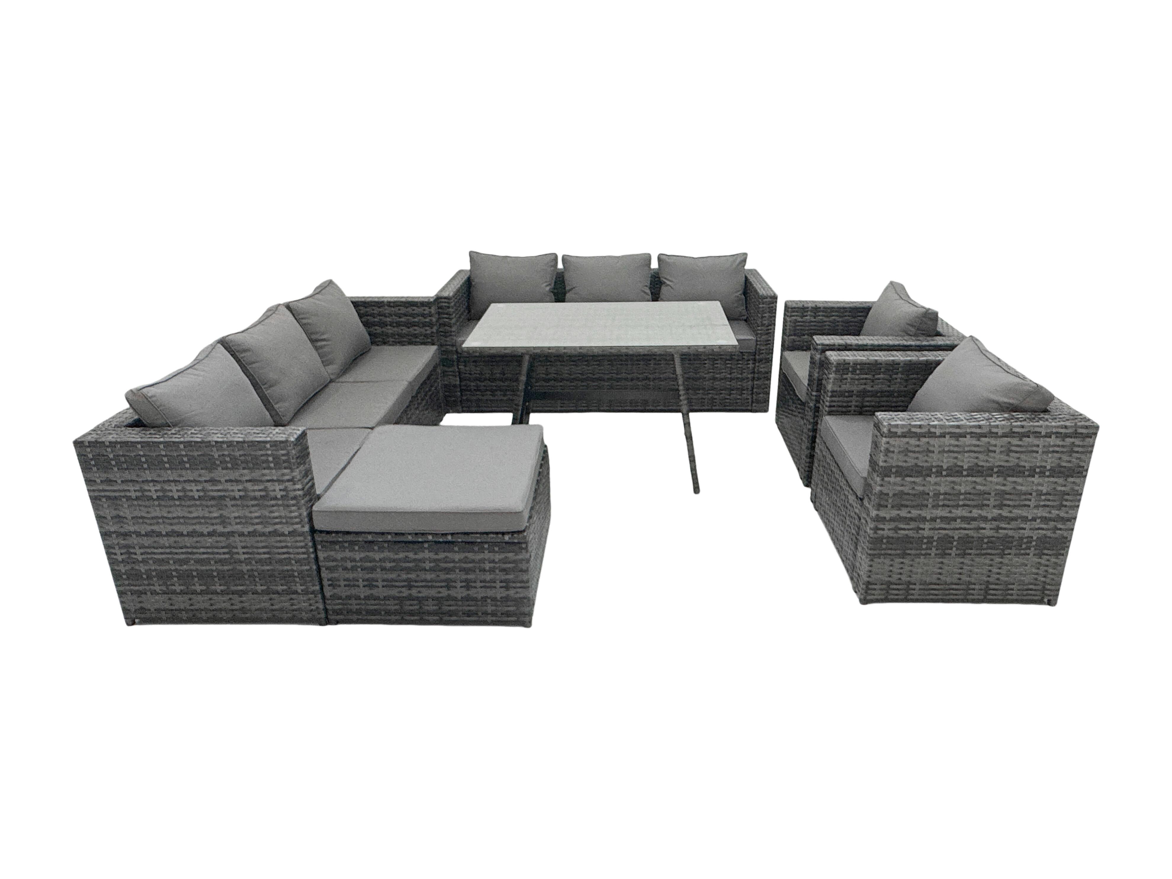 8-Sitzer Gartenmöbel Lounge Sofa Set mit Patio Esstisch 2 Sesseln 2 Großer Hockernn Dunkelgrau Gemischt