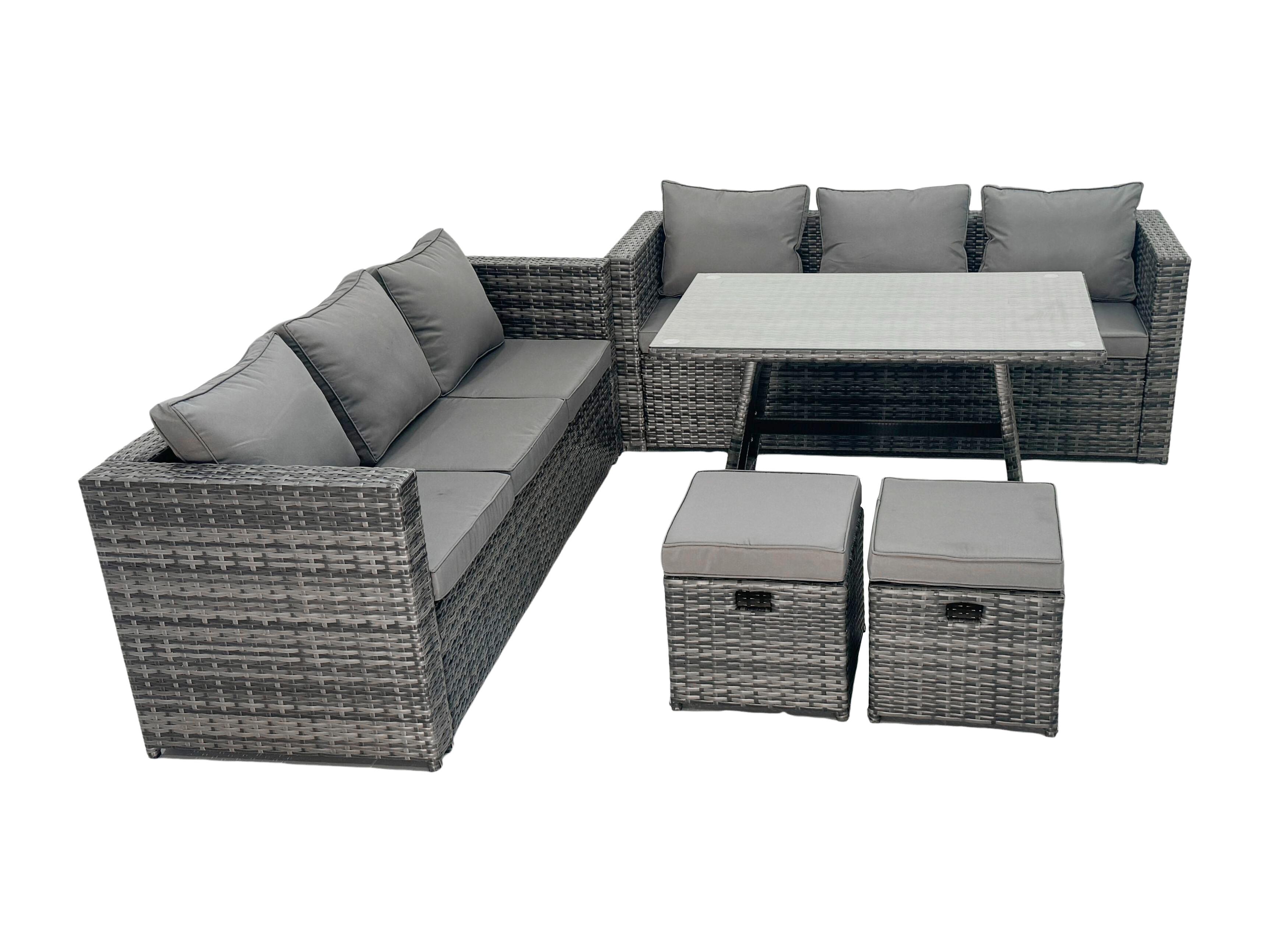 8-Sitzer Lounge Rattan Sofa Set mit Esstisch Beistelltisch Hockern Gartenmöbel