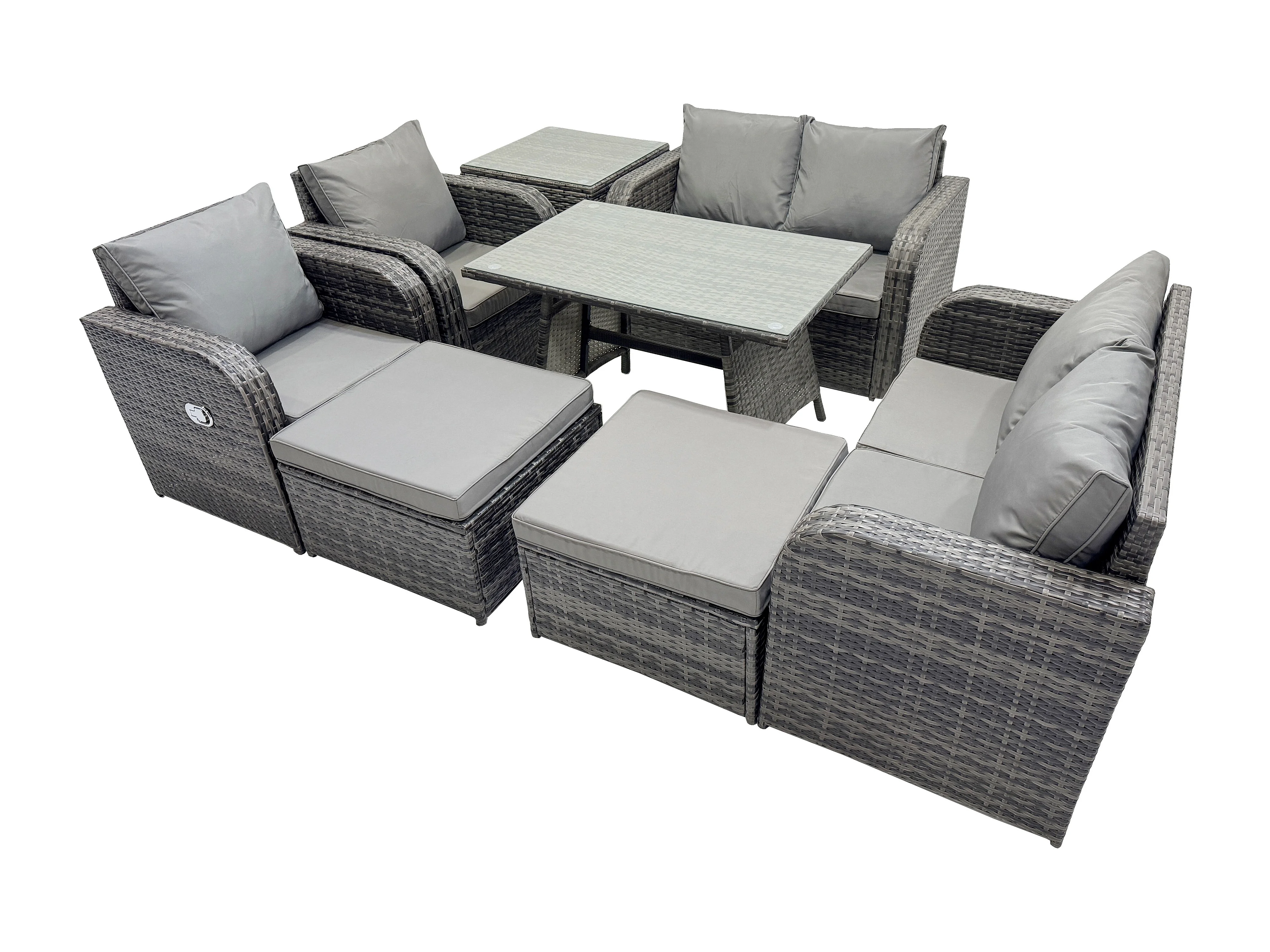8-Sitzer Polyrattan Garten Esstisch Set Gartenmöbel Sofa mit Rechteckiger Esstisch Beistelltisch 2 hohen Hockern Dunkelgrau Gemischt